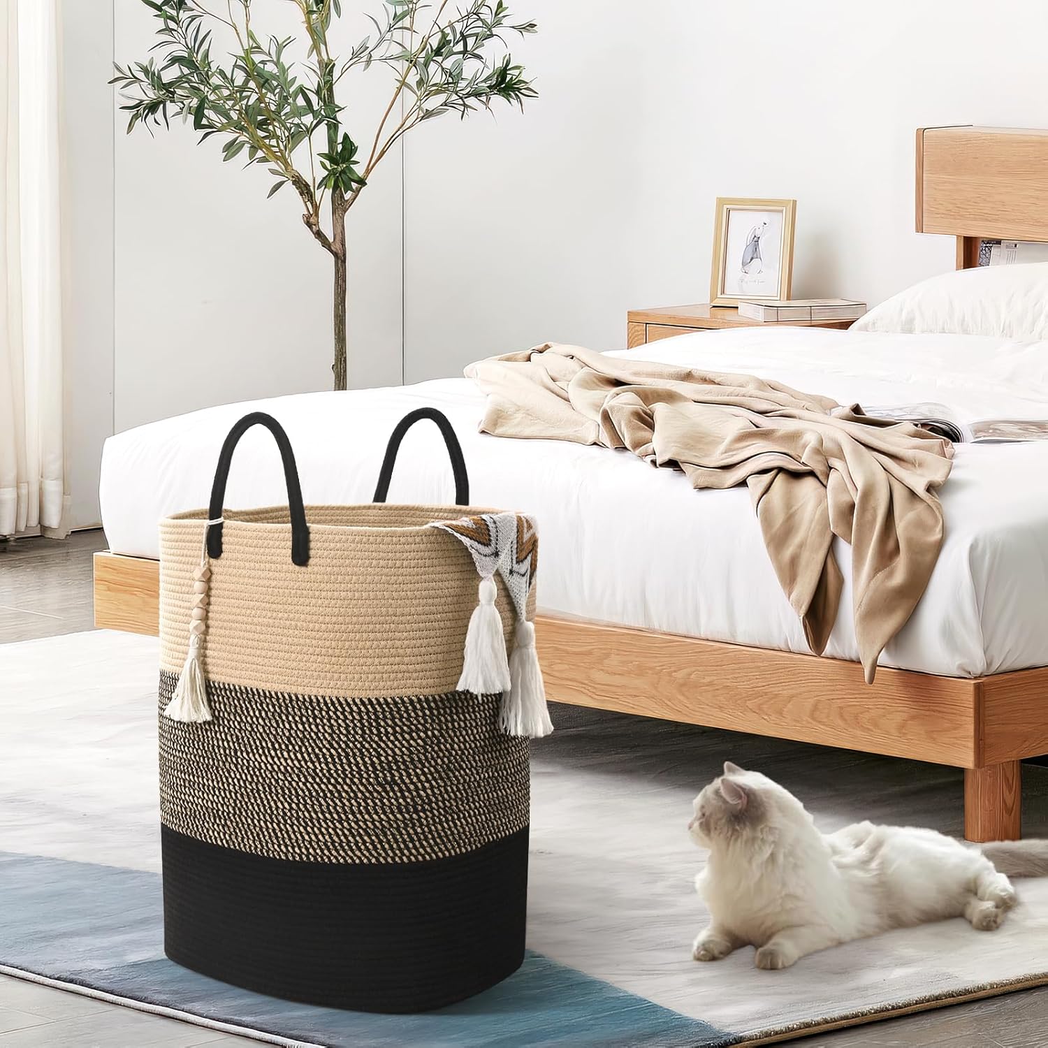 - 🎀[LARGE LAUNDRY HAMPERS WITH WOODEN BEAD TASSEL]: Laundry hamper features a wooden bead tassel that is not only makes baby laundry hamper looks boho, but also matches with different room styles, It can perfect for adding to storage baskets for a classy look!