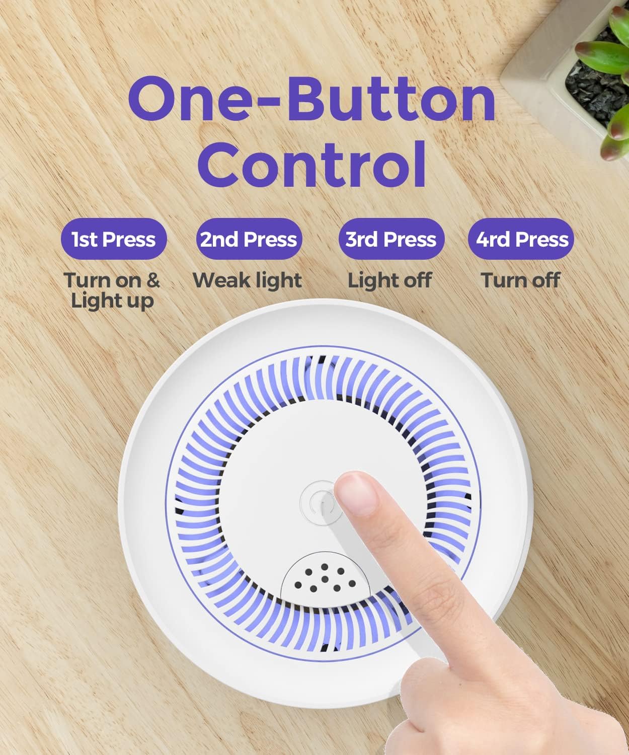 - WHISPER-QUIET & NIGHT LIGHT: The air purifier keeps noise levels as low as 28dB, and the optional blue night light creates a smoothing atmosphere, for your undisturbed sleep or reading.