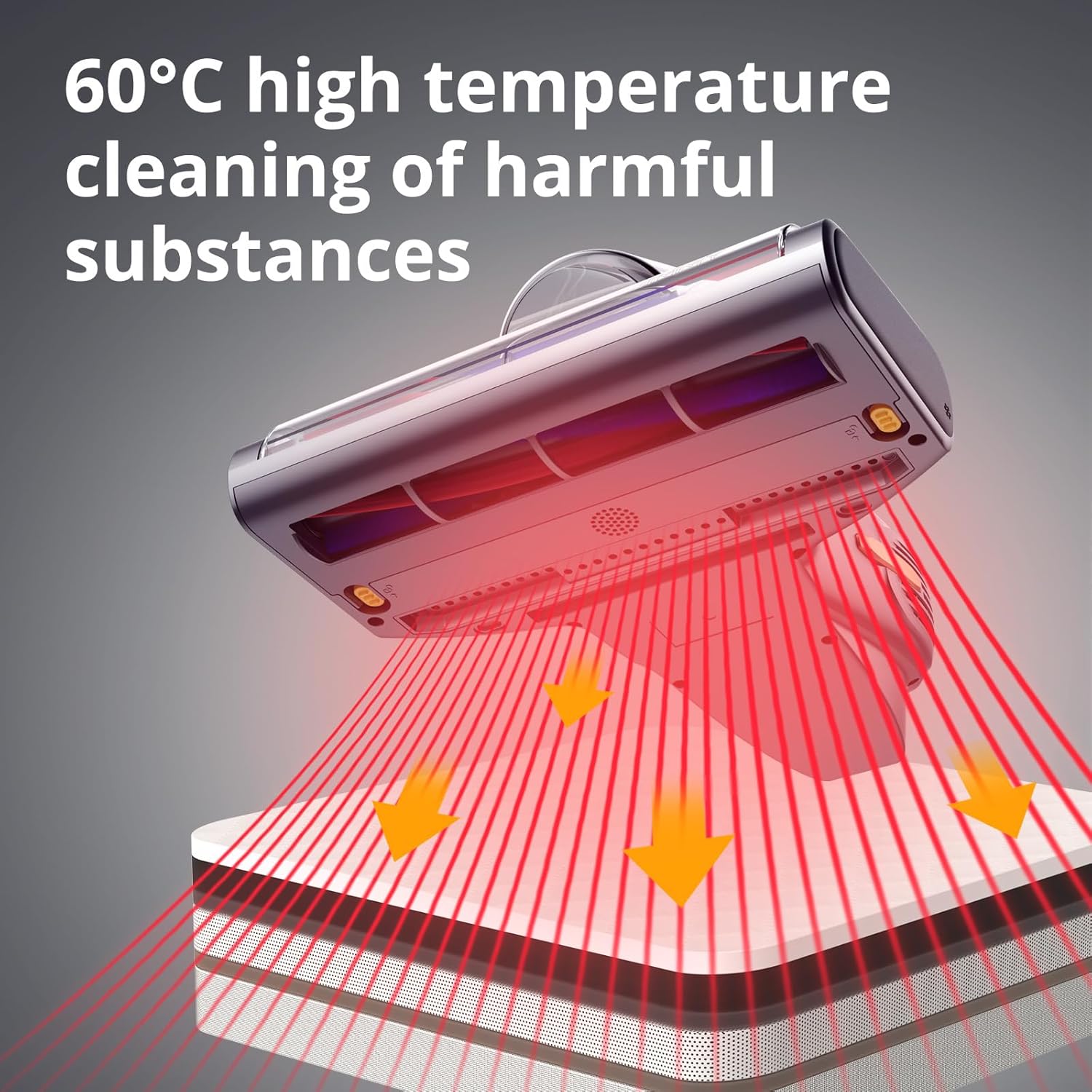 - High temperature: 5s heating to 140℉ (60℃), this vacuum cleaner can quickly removal dust, making it perfect for households with pets and babies. Note: The heating function only works when the machine is in contact with the mattress. If you lift the machine, it will automatically stop heating.
