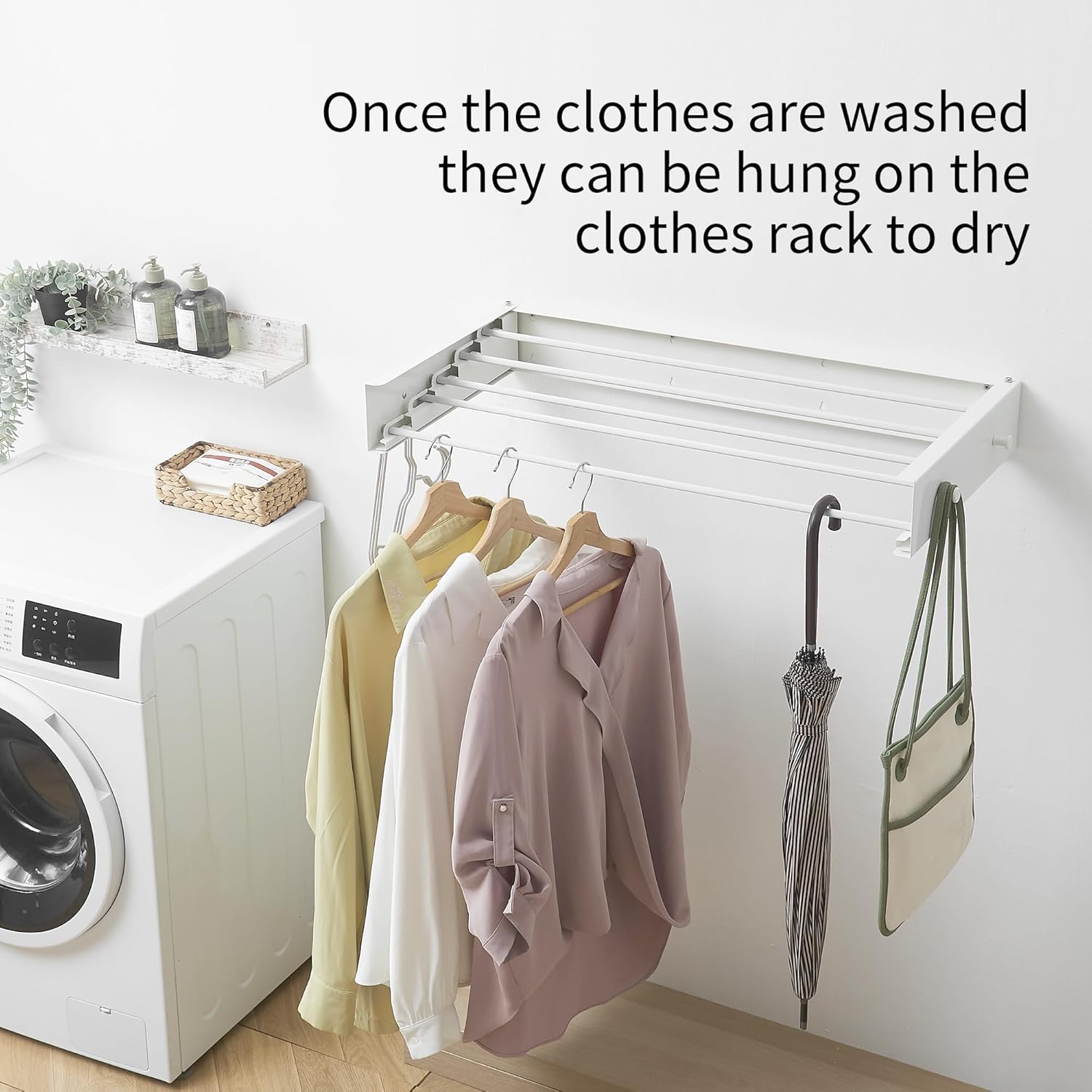 - Save Space: Folding for indoor or outdoor, this clothes drying rack is a great space saver. Compact, retractable wall-mounted design to maximize your limited space or add elegance to your spaces. Great for space constrained homes, apartments, hotels, laundry rooms. When not in use, fold it quickly to store until ready to use again