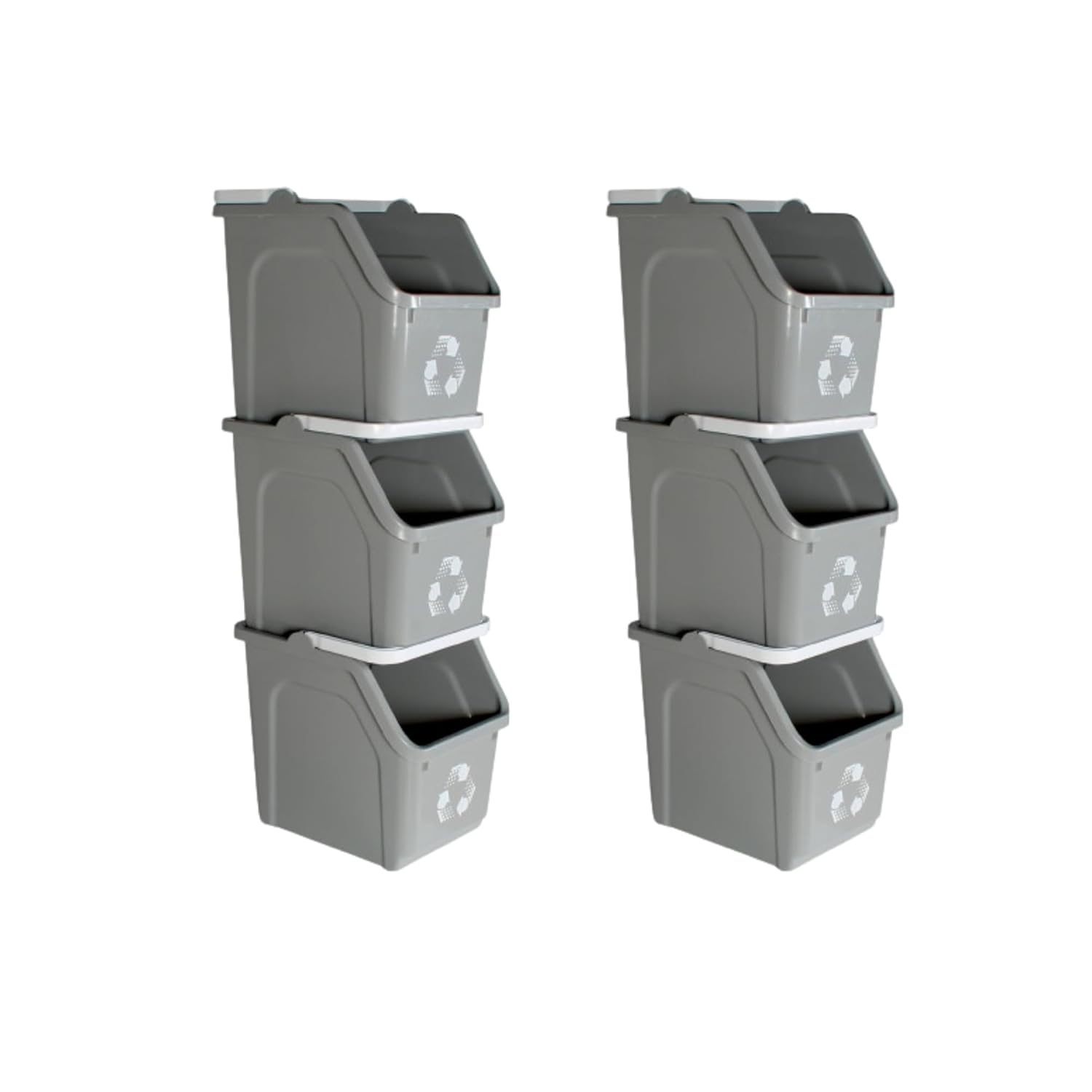 Multi Recycling Bin System with Three Stacking 6 Gallon Bins with Carrying Handles, Stackable and Compact for Offices, Homes, Garages, Businesses - (Grey, 6 Pack)