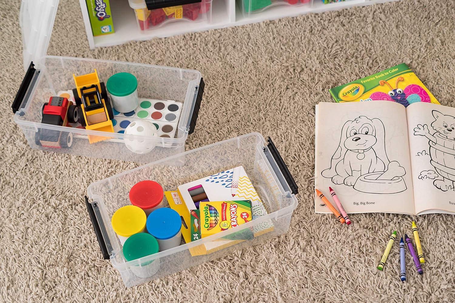 IRIS USA 6-Pack Storage Bins with Lids, 6 Quart, Made in USA Stackable See-Through Organizing Solution Latches Durable Nestable Containers Secure Pull Handle, BPA-Free Plastic