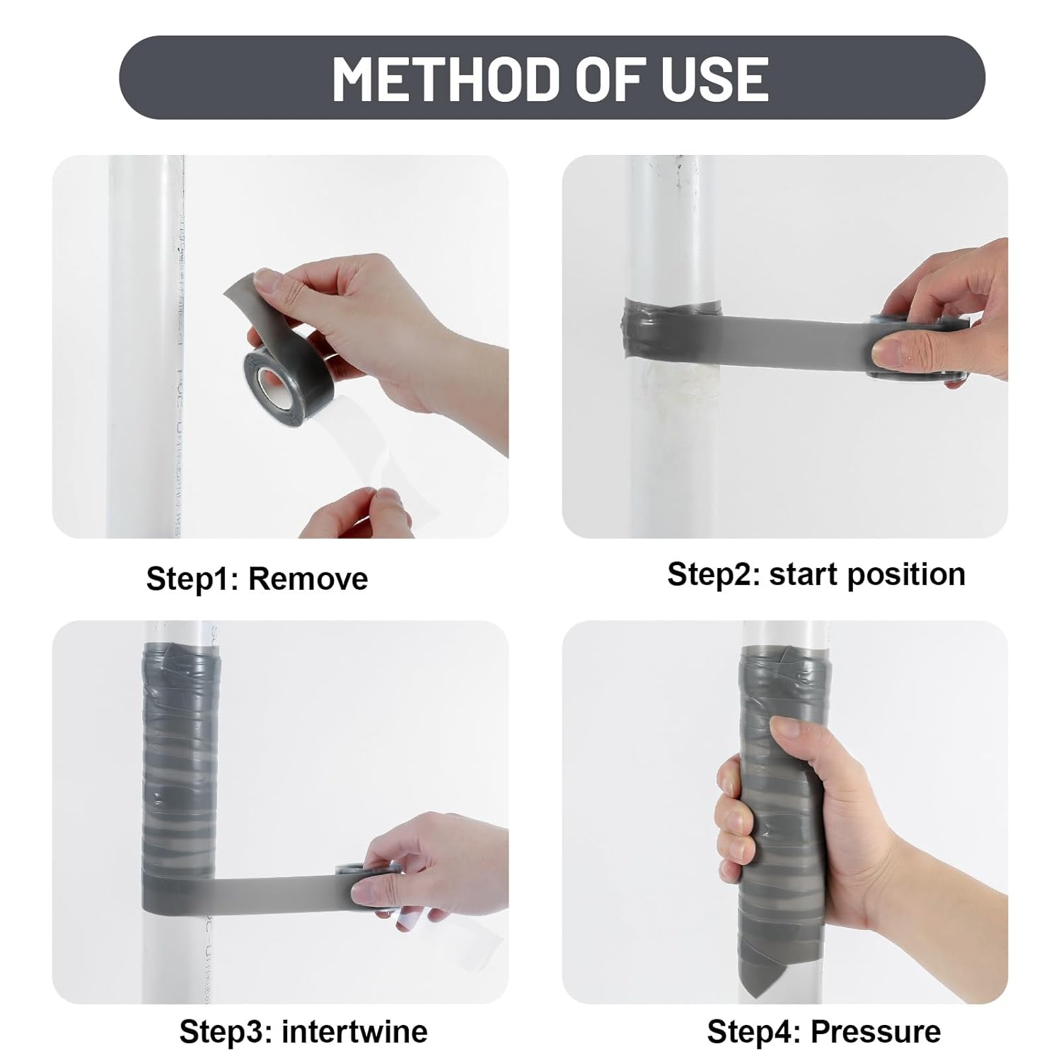 - 【Self-Melting Property】: The tape itself is not sticky, you just need to wrap and overlap it and apply pressure to it, the tape will melt on its own without the need of additional adhesive and will not leave any sticky residue.