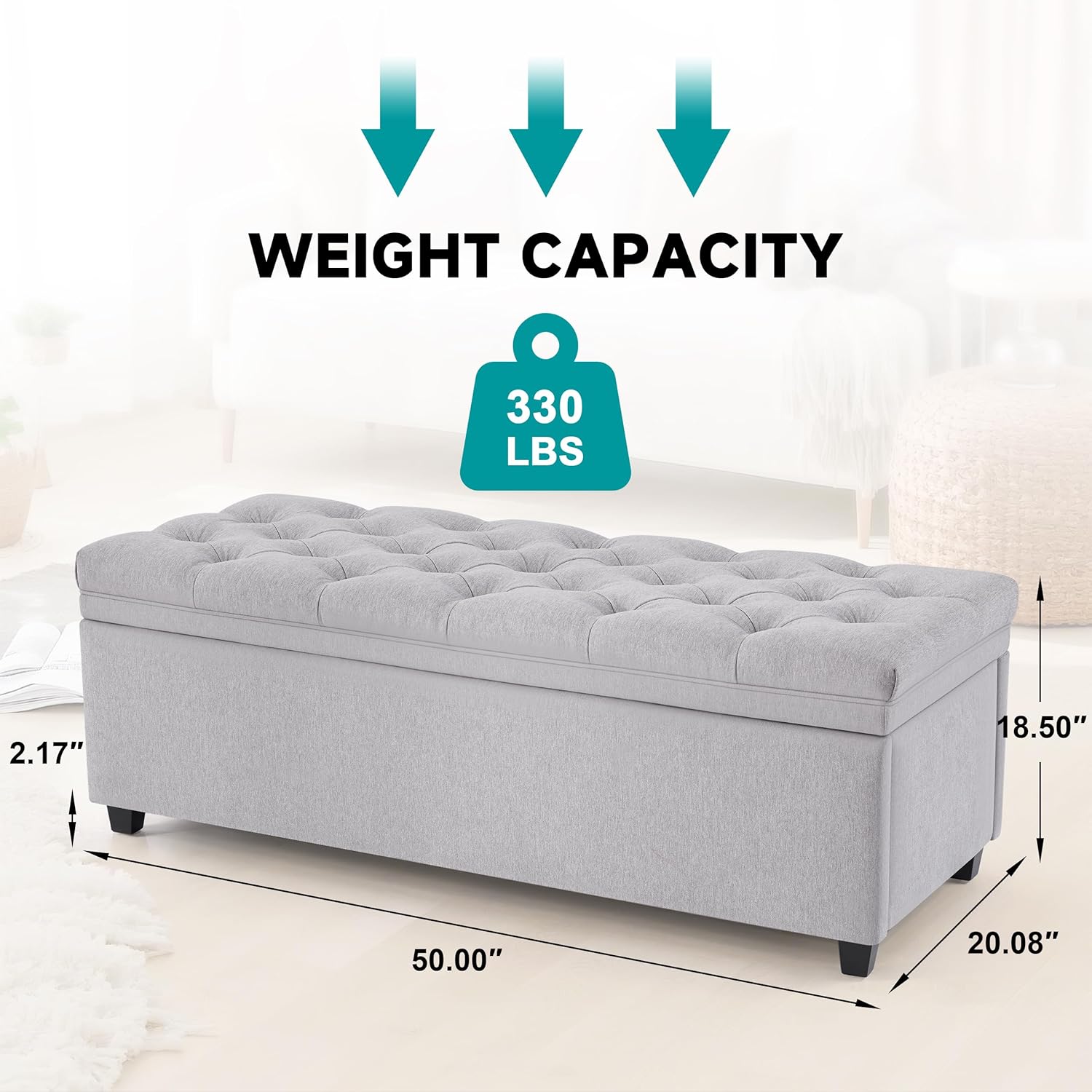 50" Storage Ottoman Bench, Tufted Ottoman with Storage for Living Room, Large End of Bed Ottomans, Modern Entryway Benchs, Window & Bedroom Benches for Foot of Bed (LightGray)