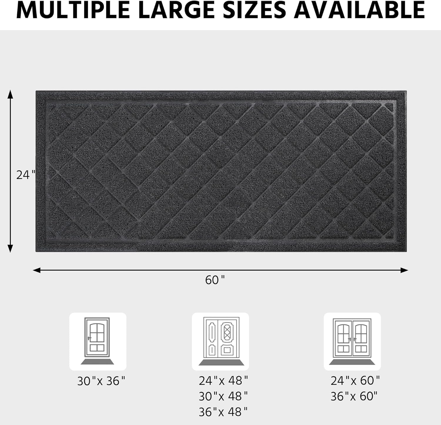 Front Door Mat Outside Entrance, 24" x 60" Heavy Duty All-Season All-Weather Waterproof Doormat Trap Dirt and Moisture Easy Clean Low Profile Patio Porch Entryway Mat