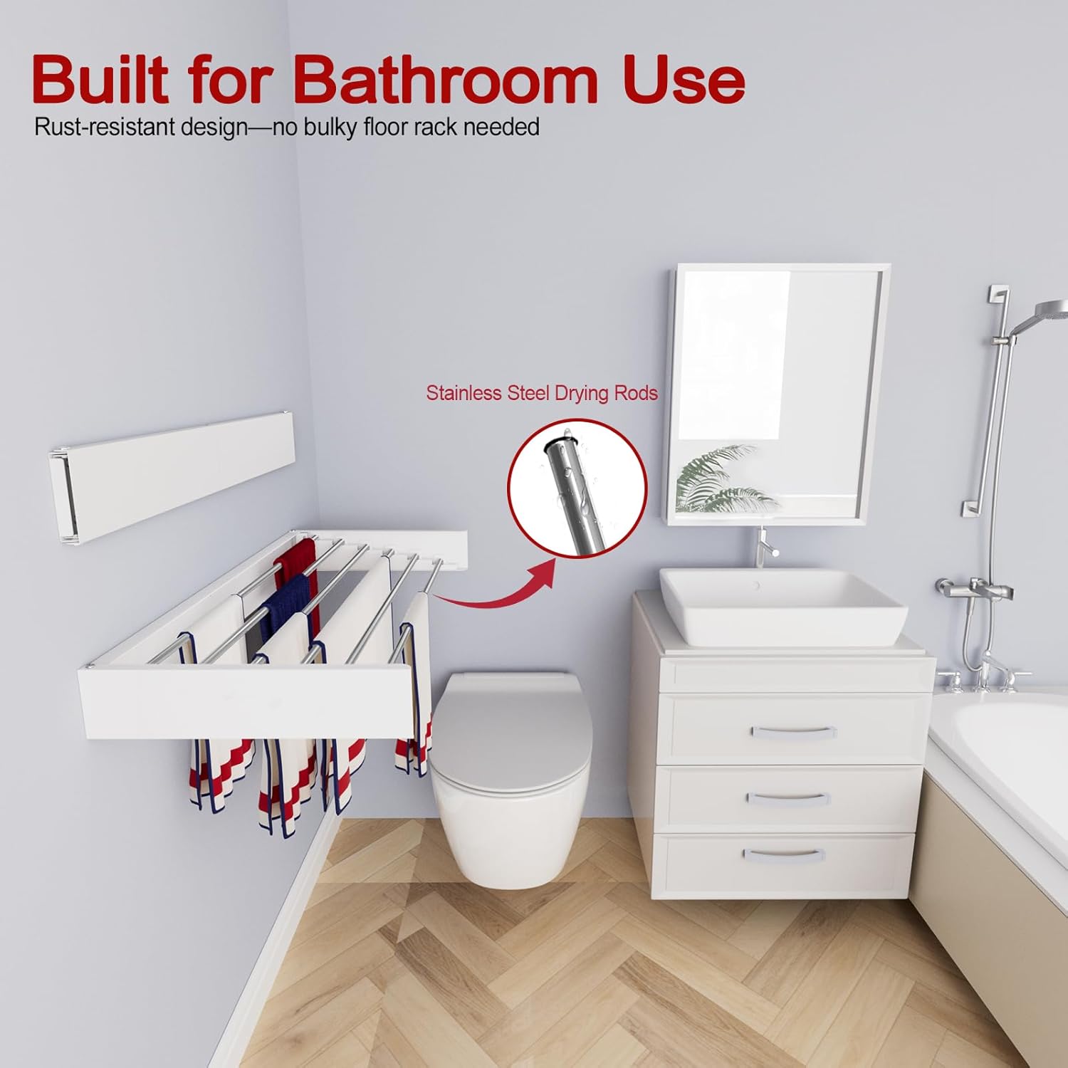 - Strong & Sturdy: Drying rods are made of thick, premium stainless steel that resists rust and bending. The solid frame provides long-lasting strength and stable wall support—a perfect foldable wall drying rack. Your laundry room essentials
