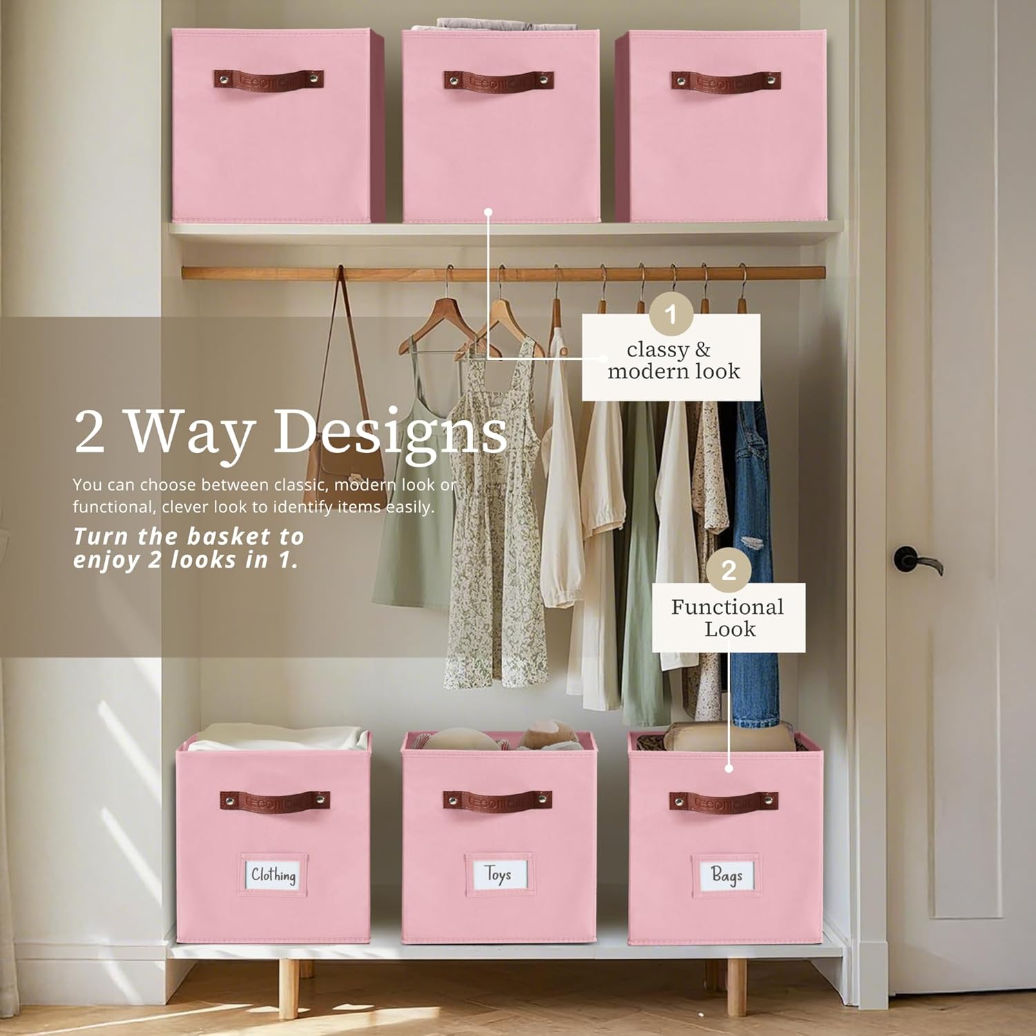 - 2-Sided Designs: With its dual handle features, our storage cubes can be used in both sides with a label holder on the front, or at the back.