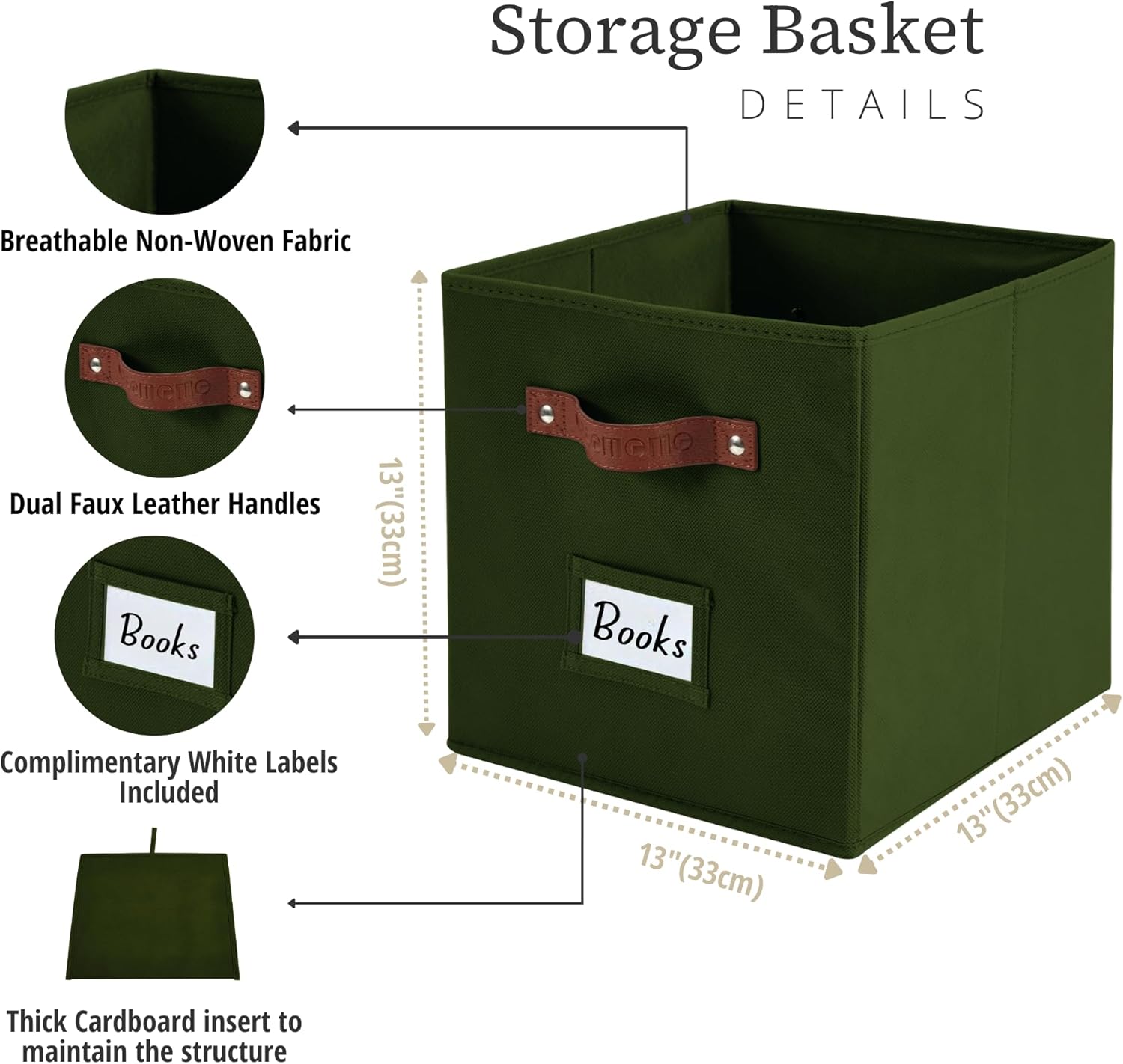 DECOMOMO Storage Cubes, 13x13x13 Storage Cube Bins with Labels, Fabric Organizer Bins (13" / 6pcs, Olive Green)