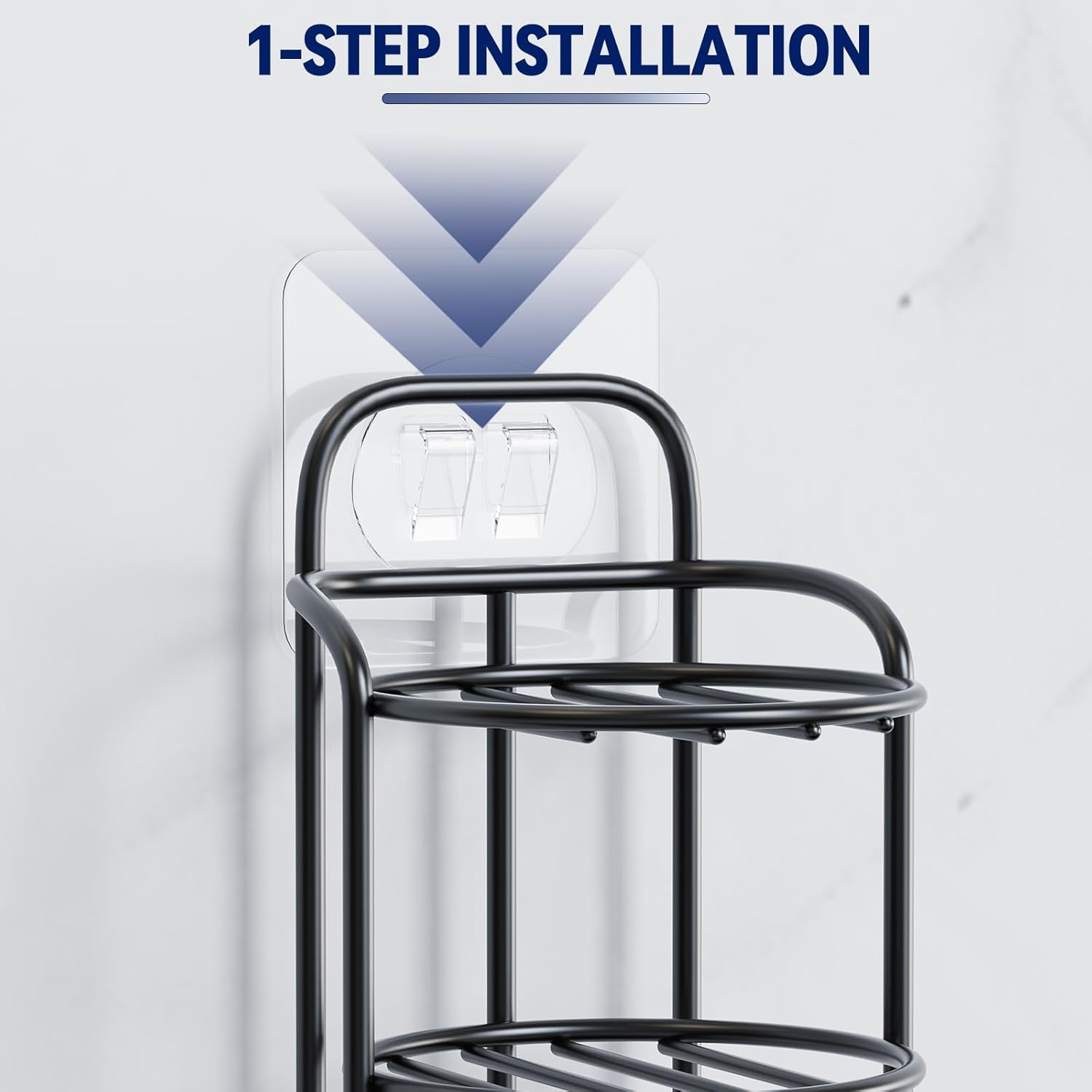2-Tier Shower Soap Shampoo Bar Holder, Self Adhesive & Freestanding Draining Soap Dish Caddy for Bathroom Wall Accesories Decor Black