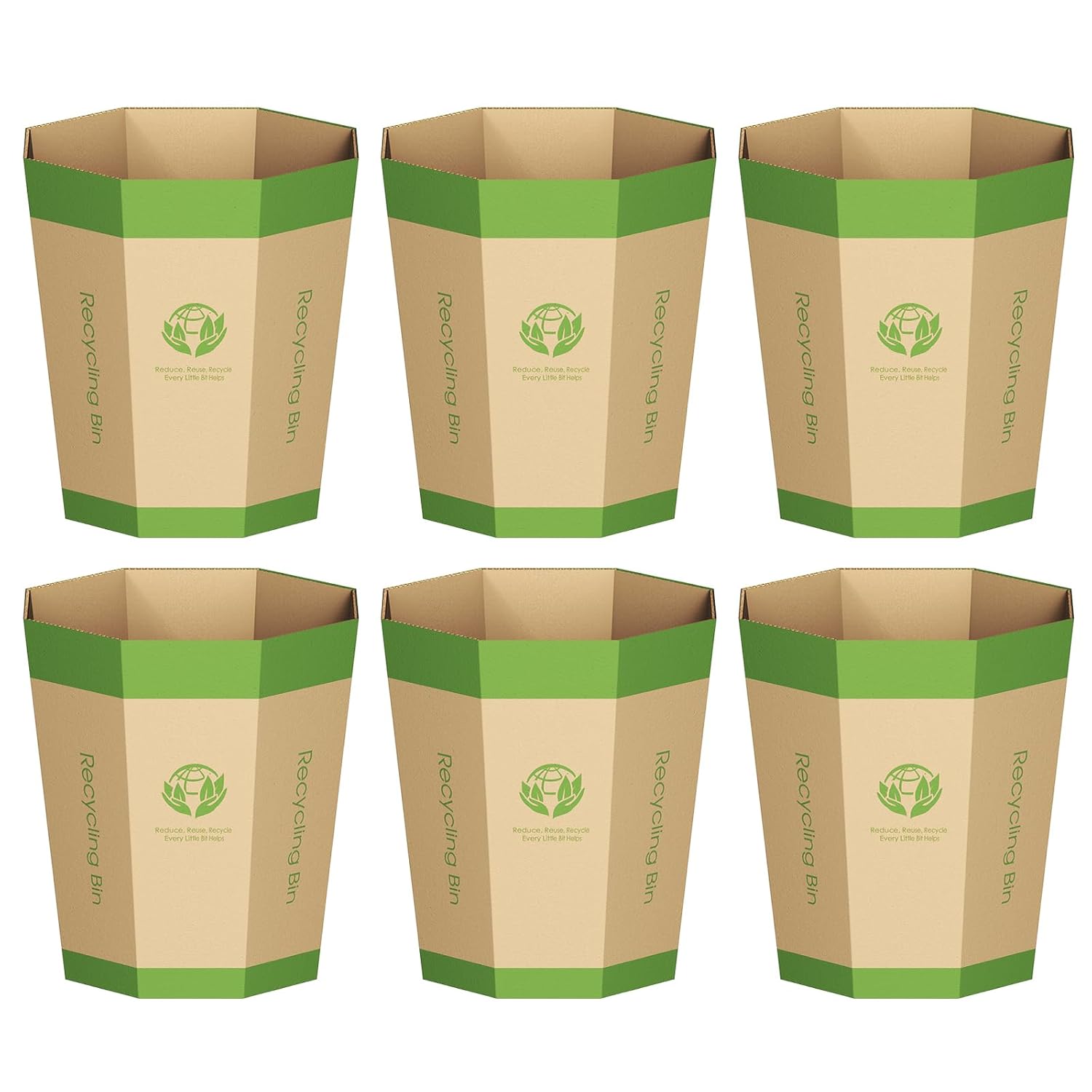 6-Pack Cardboard Trash Can – Foldable, Recyclable, Plastic-Free & Reusable Small Waste Paper Basket - Garbage Bin Perfect for Office, Bedrooms, Home, Events & Outdoor Activities (2.1 Gallon)