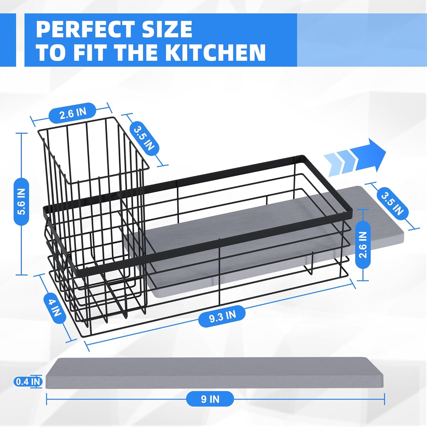 - [Ingenious Material Craftsmanship]: The sponge rack is made of high-quality stainless steel material with strong resistance to deformation. Electrostatic spraying of black paint layer and anti-oxidation primer eliminates the hidden danger of rust and is durable. The sink caddy organizer is easy to clean, and the quick-drying stone mat can be taken out and rinsed under the faucet or cleaned with sandpaper.