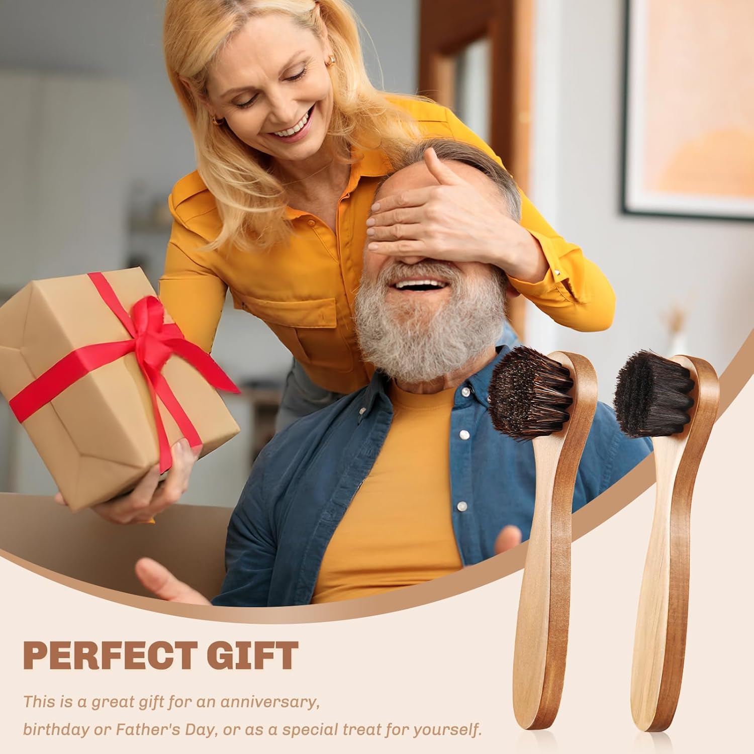 2 Pcs Horsehair Shine Shoes Brush Kit Polish Dauber Applicators Cleaning Leather Shoes Boots Care Brushes Suede Cleaner Brush(Wooden Long Handle)