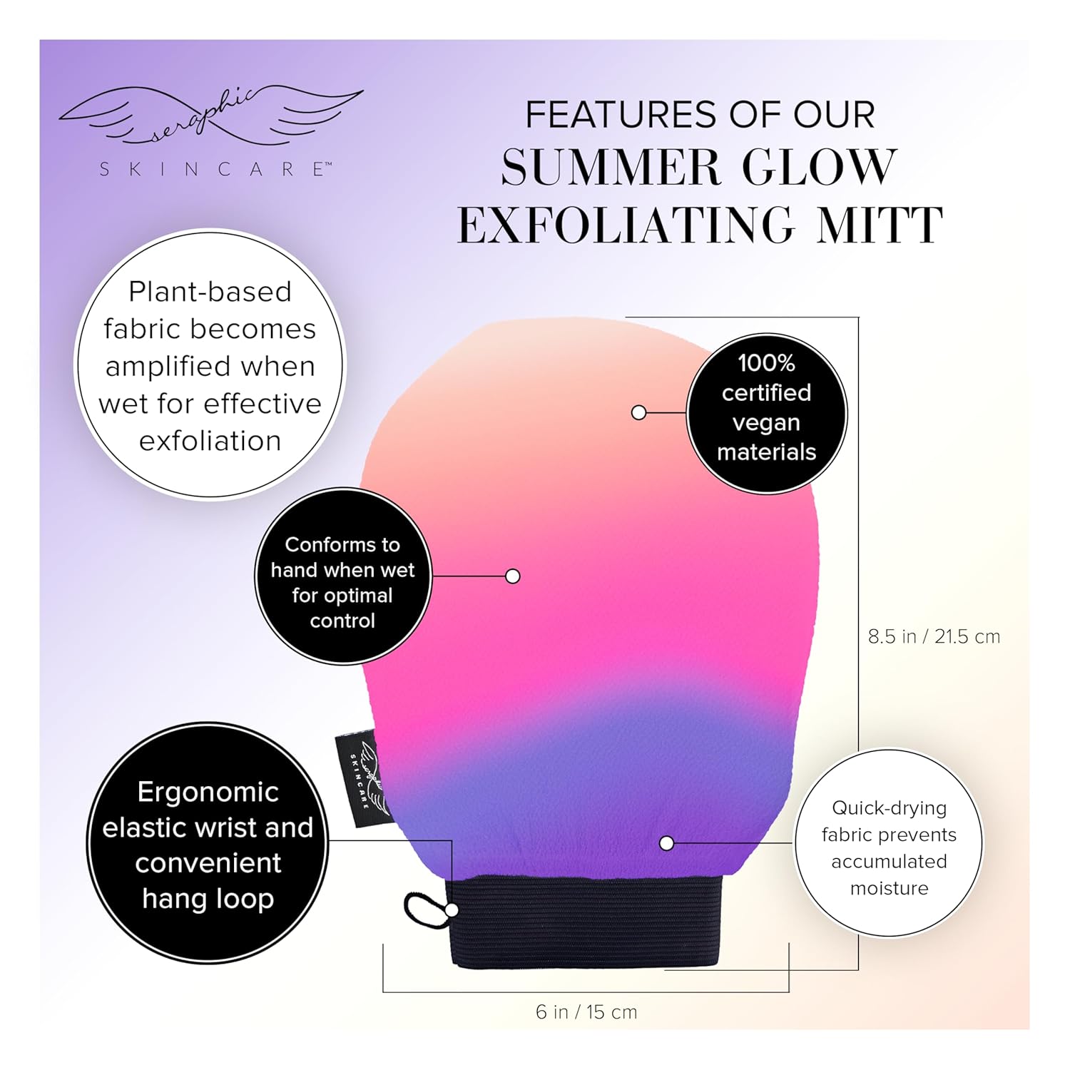 Seraphic Skincare (Summer Glow) Premium Exfoliating Mitt for Body 1pc– 100% Vegan Viscose Traditional Body Scrub Glove Kessa Korean Washcloth – Body Exfoliator for Self-Tan Removal & Keratosis Pilaris