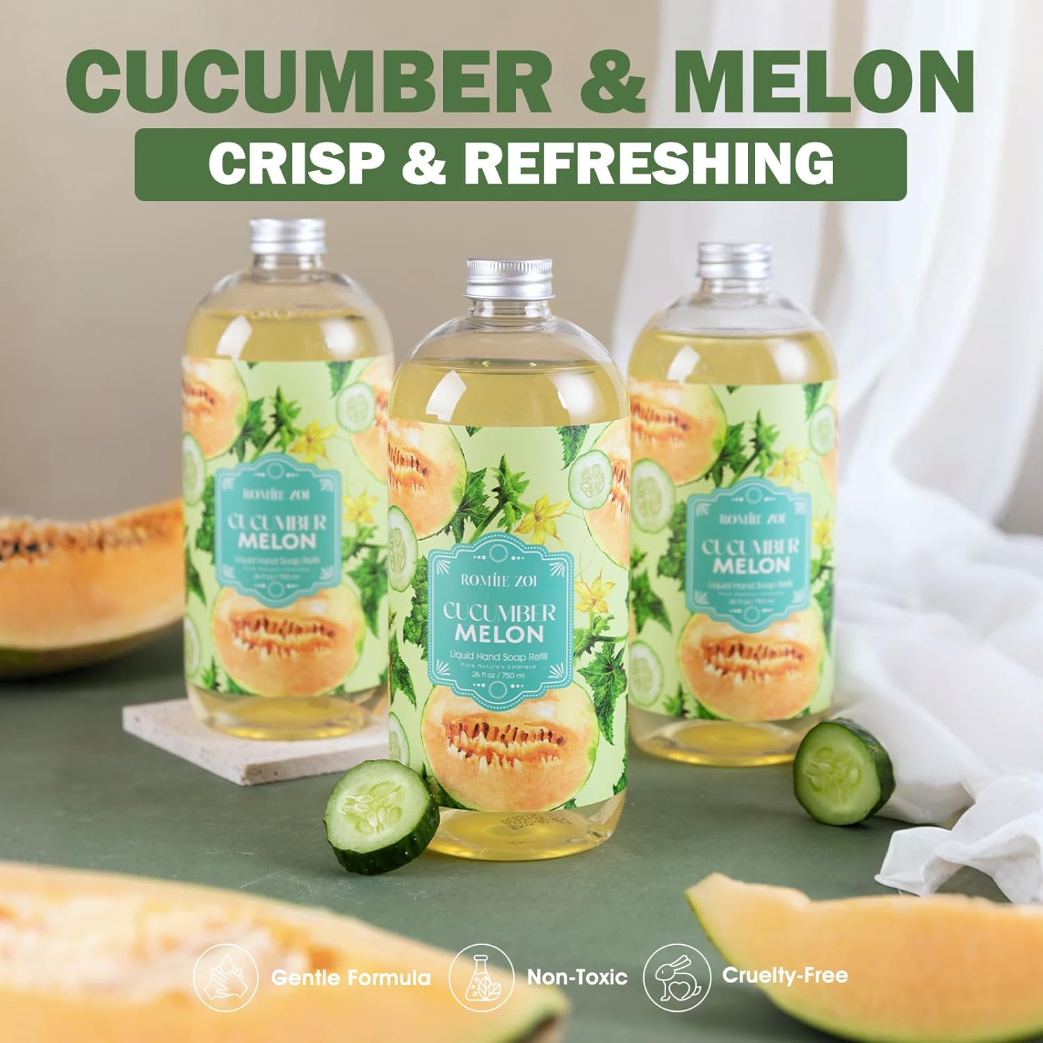 - 【Fresh & Uplifting Scent】A refreshing hand soap refill combining crisp cucumber and juicy melon for a clean, uplifting wash. Made with a plant-based, cruelty-free formula that’s gentle on hands and perfect for daily use or gifting.