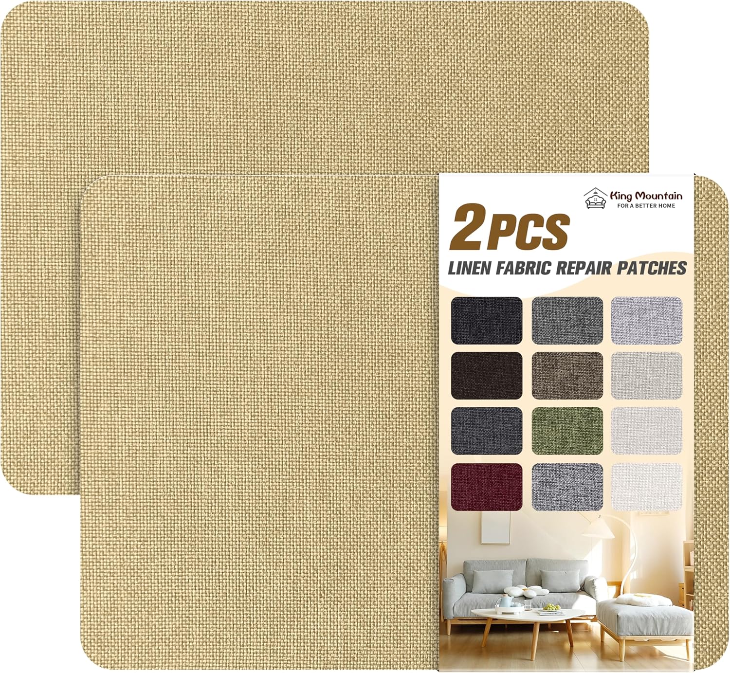 KING MOUNTAIN Coarse Linen Repair Patches, Self-Adhesive Linen Fabric Patches, 8X11 inch 2 PCS, Multi Color, Can be Used for Linen Sofa Repair and Linen Clothes Repair(8" x 11"-2PCS,Khaki)
