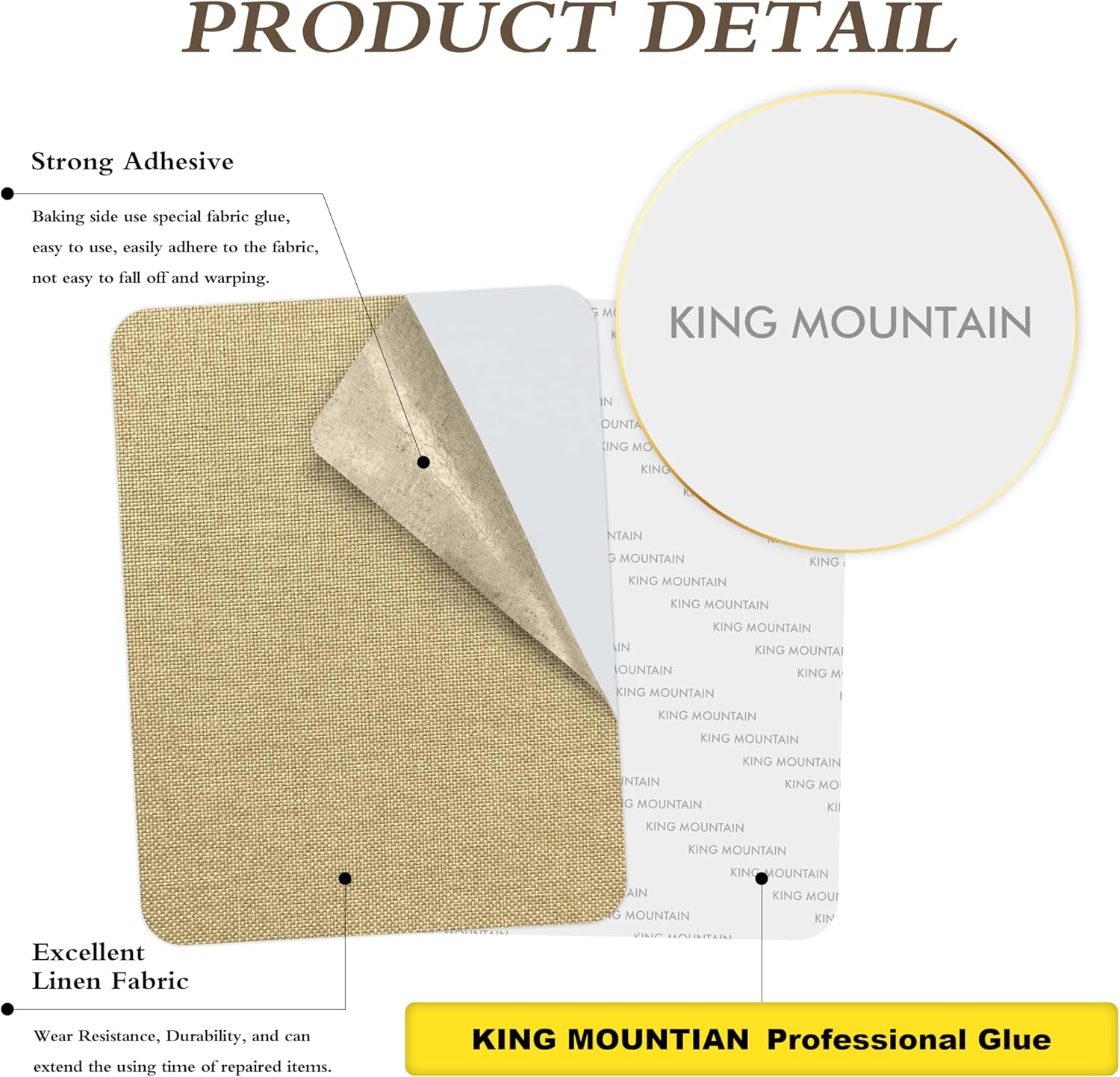 KING MOUNTAIN Self-Adhesive Coarse Linen Repair Patches, 8X11 inch, Multi Color, Can be Used for Linen Sofa Repair and Clothes Repair(8" x 11", Khaki)