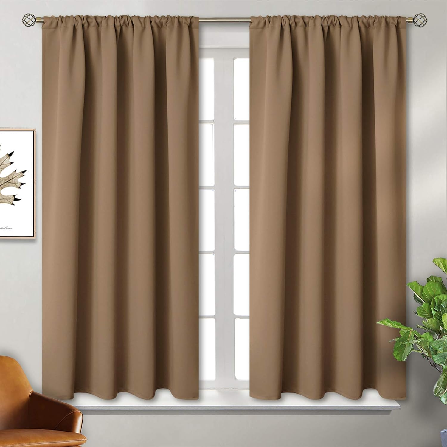 - Package Includes: Set of 2 taupe blackout curtains; each panel measures 42 Inch wide by 40 Inch long.