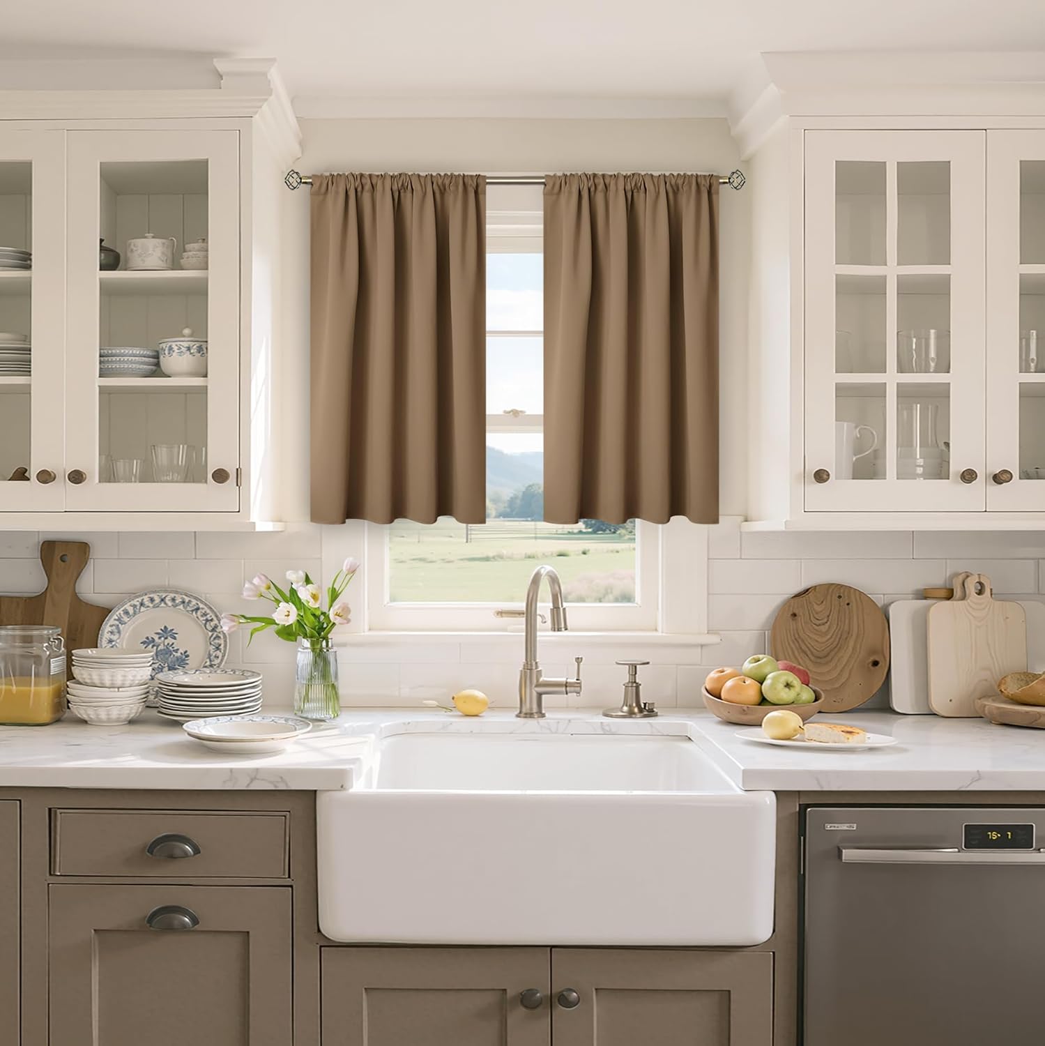 BGment Taupe Blackout Curtains 40 Inches Length - Short Thermal Insulated Drapes with Rod Pocket Room Darkening Privacy for Bedroom Kitchen Bathroom Window, 42 x 40 Inch, 2 Panels