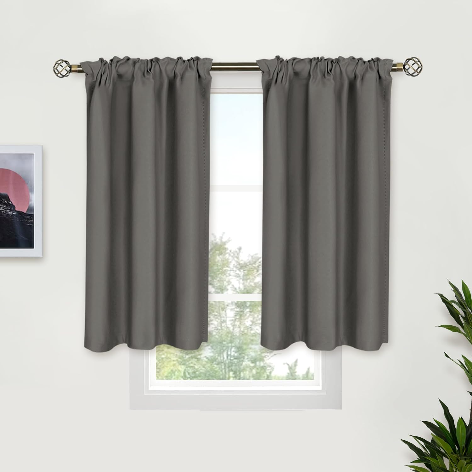 BGment Short Blackout Curtains 45 Inches Length for Bedroom - Rod Pocket Thermal Insulated Room Darkening Window Curtain for Kitchen Cafe, 34 x 45 Inch, 2 Panels, Grey