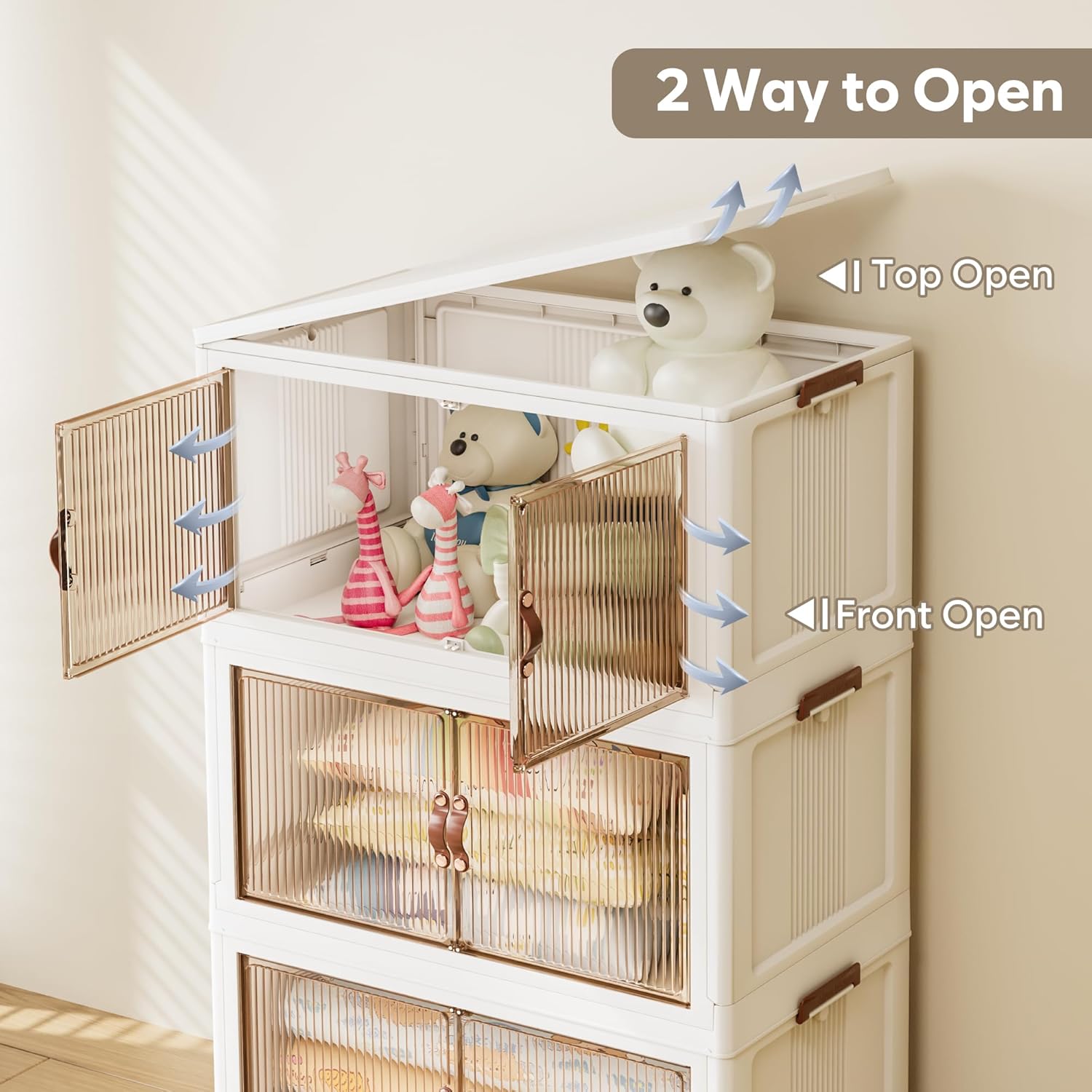 - 【Two Way Open】The bins feature front double doors or top lid openings. The magnetic lock provides easy access to the front, while the top lid allows for easy access to larger items like clothes and blankets. These bins are perfect for storage bins with drawers to enhance organization and storage.
