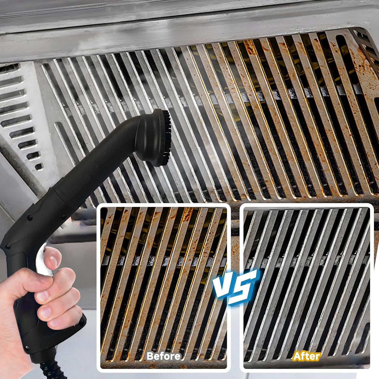 - 【𝐇𝐢𝐠𝐡 𝐏𝐫𝐞𝐬𝐬𝐮𝐫𝐞 𝐃𝐞𝐞𝐩 𝐂𝐥𝐞𝐚𝐧𝐢𝐧𝐠】:The powerful 2100W heats up quickly, Preheats in 3-8 minutes after a refill, delivering over 320°F of intense steam, Whether the kitchen messes, floor stains, steam cleaner high heat and pressure deliver superior performance, deep clean grease and grime in crevices