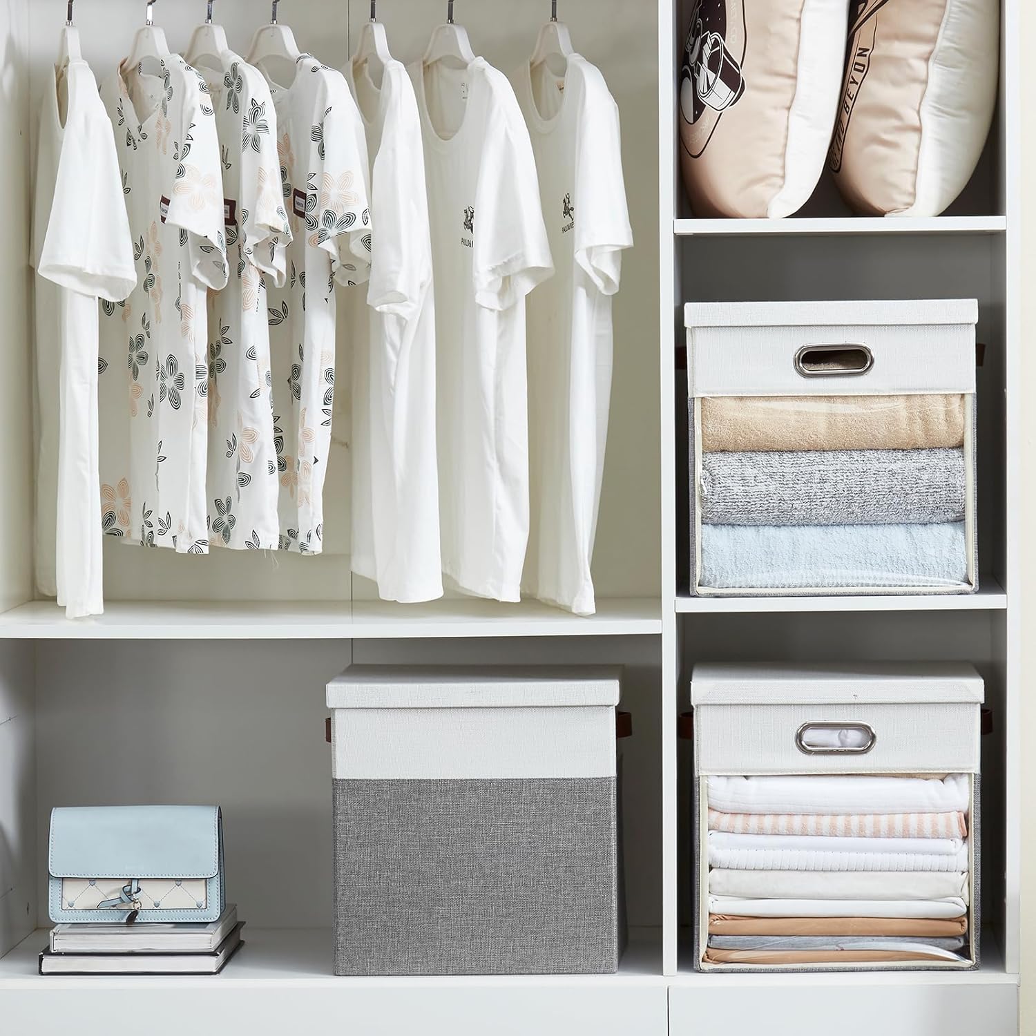 - Excellent Quality: Clear window cube storage organizer is made of high quality linen, soft, breathable and odorless. In addition the storage cube is paired with reinforced thick cardboard, not easy to tear and deform, durable, for your long-term storage needs. The storage basket with lid protects against dust, keeping your items neat and clean.
