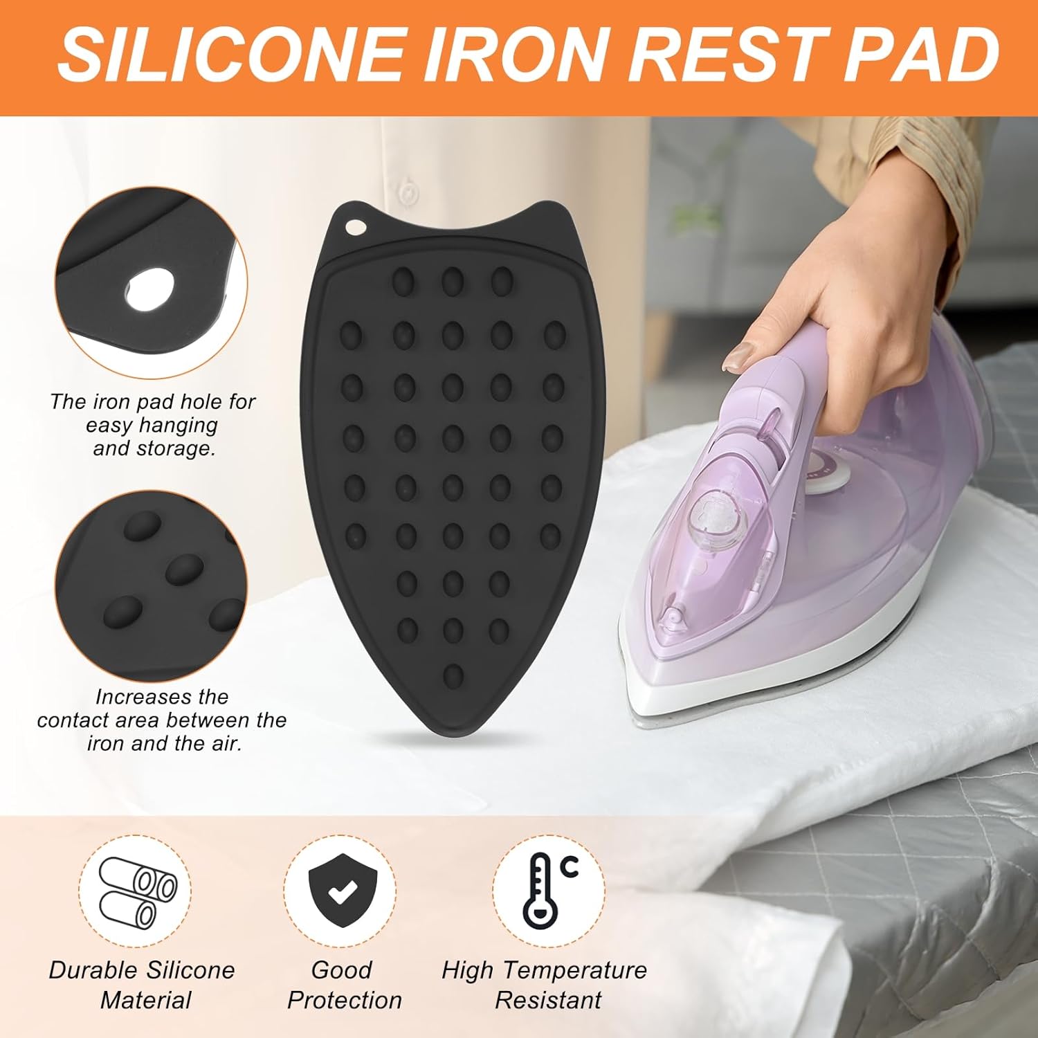 - This multifunctional silicone iron rest pad is designed for surface protection and daily use. It can protect your desktop or furniture from being burned or scratched by a high-temperature iron. It is suitable for household ironing boards and steam iron insulation pads.