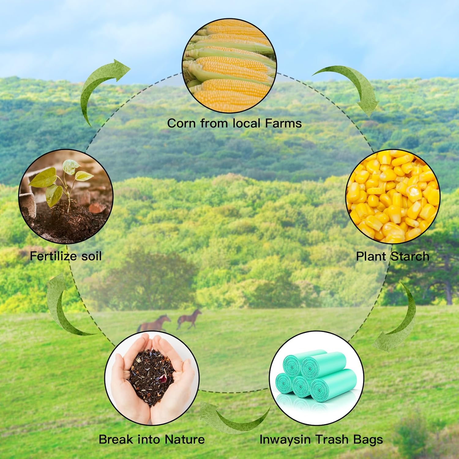 - 【From Nature to Nature】Inwaysin 4 gallon trash bag is made of renewable plant starch material (corn starch) to be broken down into water and CO2 in approximately 12-24 months without causing damage to the environment
