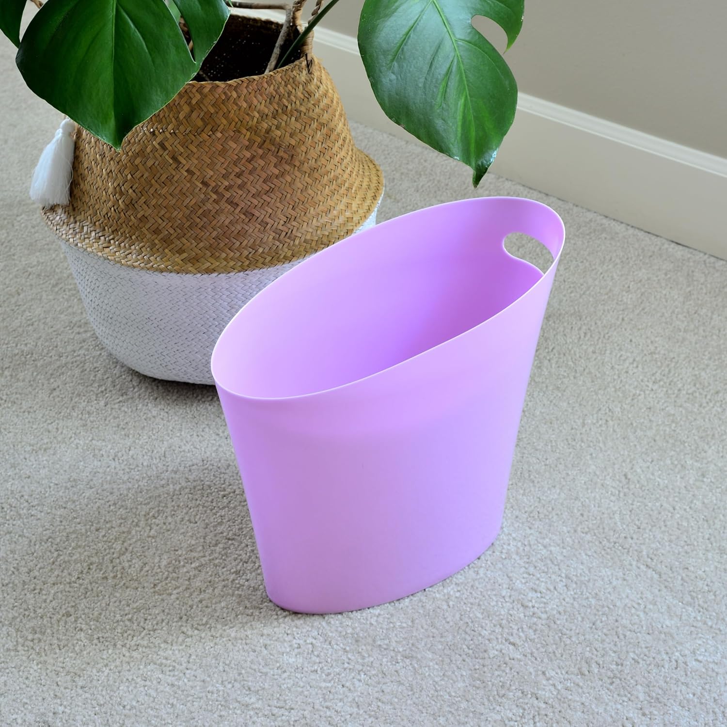 - Functional and Versatile- 9.5 inch in height small plastic trash wastebasket with handles is perfect size in your home office, living room, study room, kitchen, and bathroom.