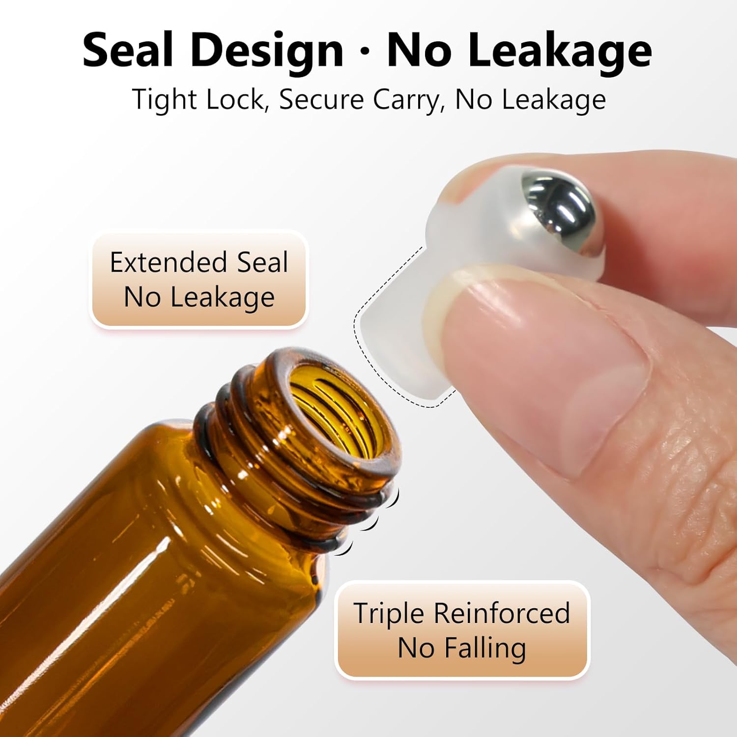 - Leakproof Design: These essential oil roller bottles feature a screw-thread finish and a secure black plastic cap, ensuring a tight seal to prevent leaks. The dual-cap design adds an extra layer of leakproof protection to your oils, perfumes and blends — safely put in your purse, gym bag or suitcase.