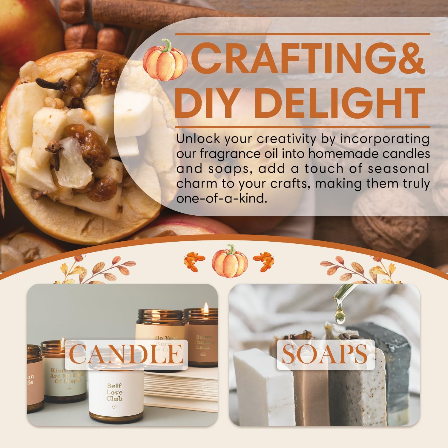 - Autumn in a Bottle - Made from high-quality oil, our apple cinnamon fragrance oil make a true-to-life scent experience. Enjoy the cozy, comforting blend of sweet apples and spicy cinnamon—perfect for creating a welcoming ambiance in any space. Ideal for fall, holidays, or anytime you crave that nostalgic, homey scent.