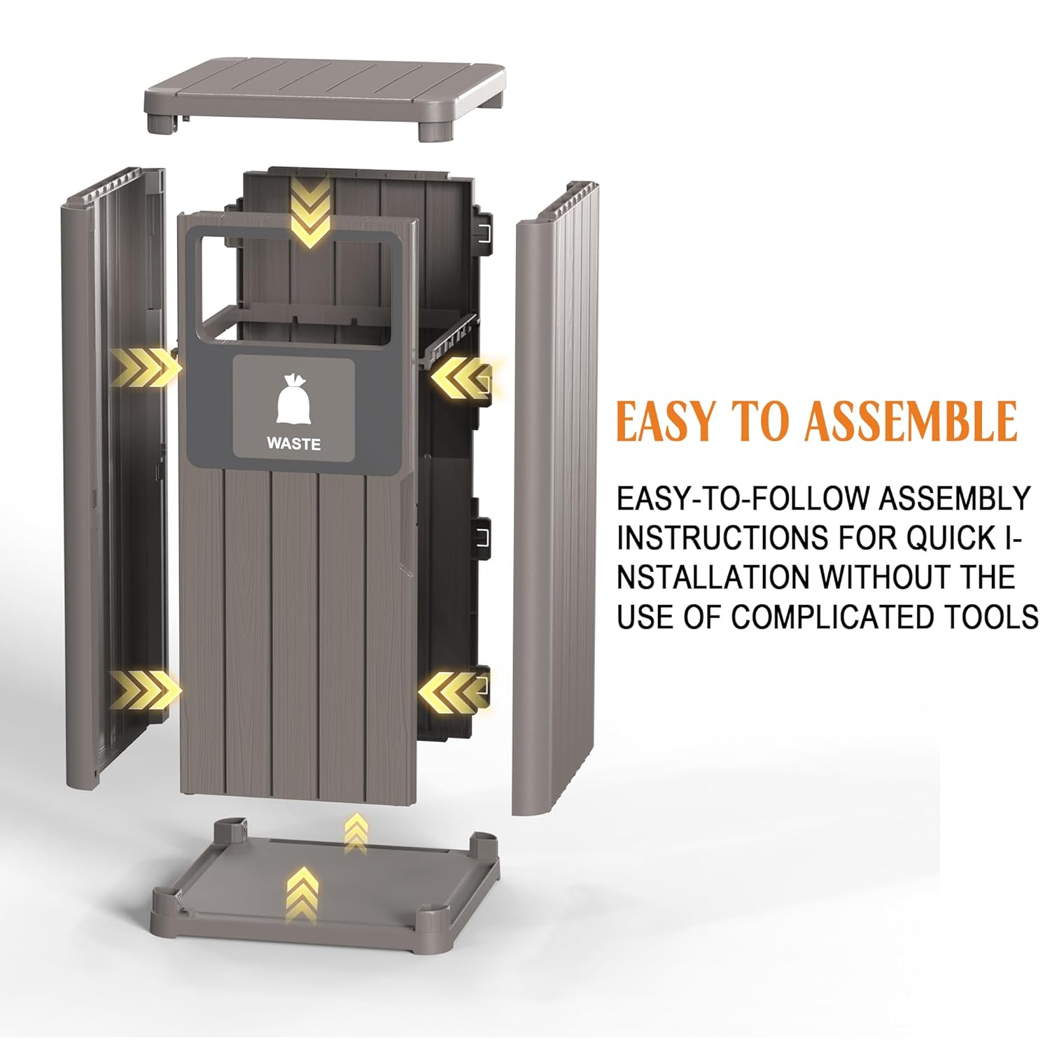 Outdoor Single Barrel Trash Can,Waterproof Resin Garbage Can with Garbage Labels,Durable Waste Bin for Porch, Backyard,Kitchen,for 30 to 39 Gallon Trash Bags
