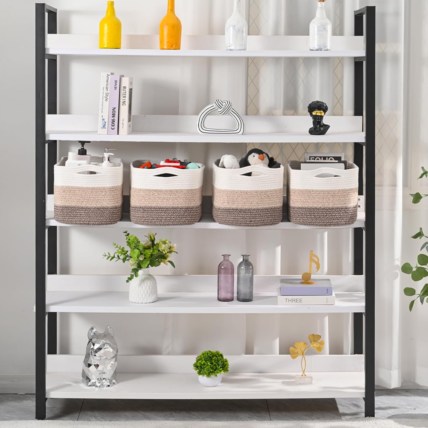 - DECORATIVE CUTE WEAVED BASKETS: ICERZCZ is dedicated to tidy and organizing beautifully for the home. A stylish and practical way to display eye-catching items on tables and counters. Not only will our shelf baskets set help you organize your items, its sleek, sophisticated shape and neutral colors will complement any decor