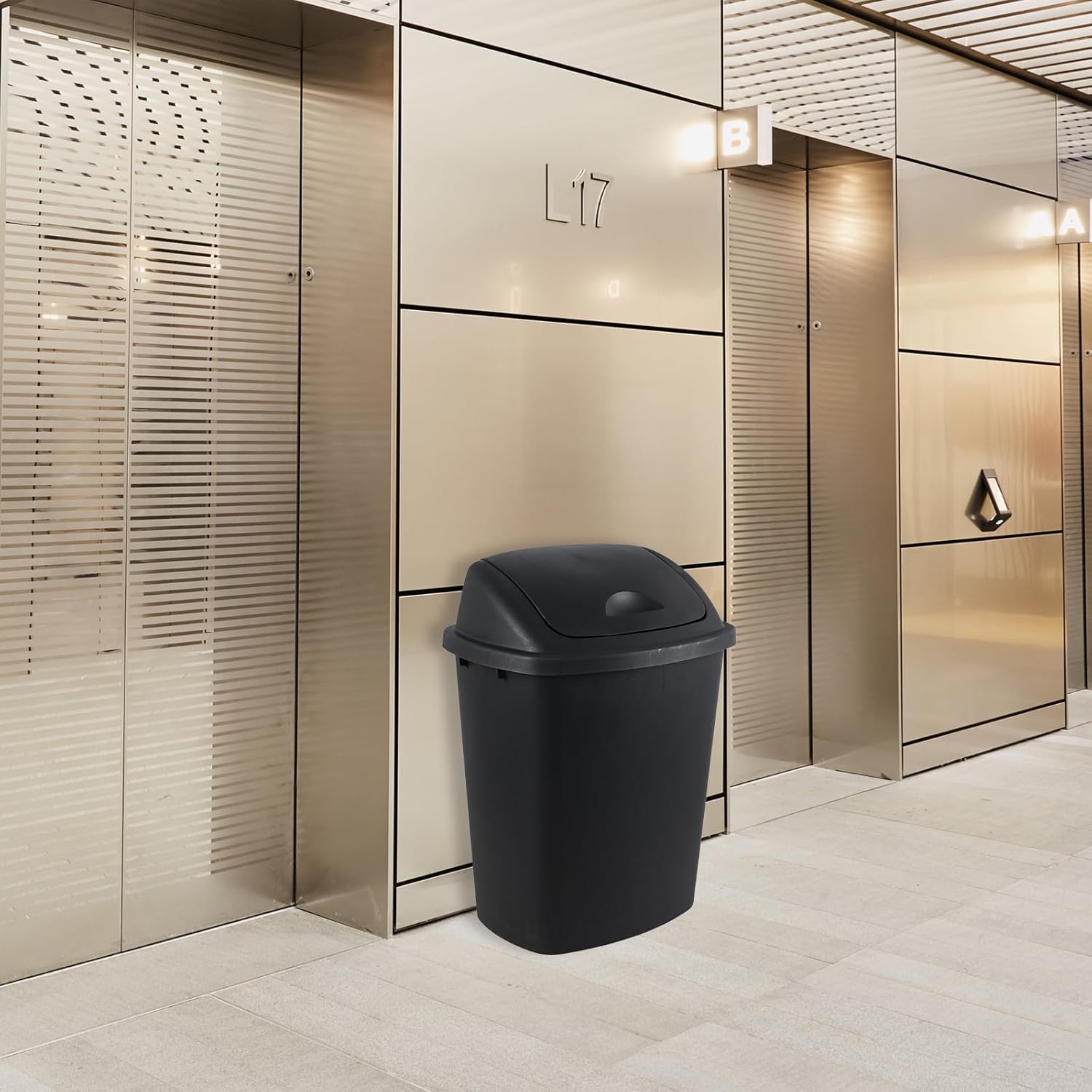Yuright 40 L / 10 Gallon Swing Lid Trash Bins, 4 Pack Large Plastic Garbage Cans, Black