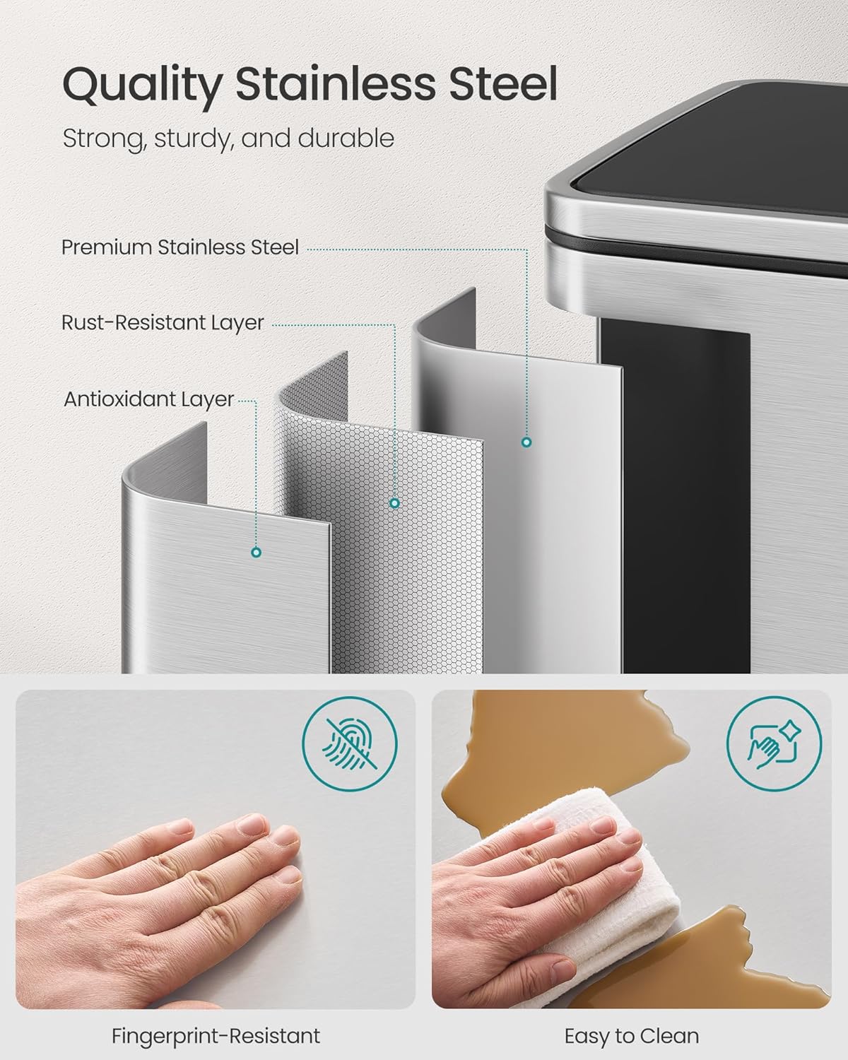 - Built to Last: Constructed from premium stainless steel, this trash can is resistant to both rust and fingerprints, ensuring its durability and long service life
