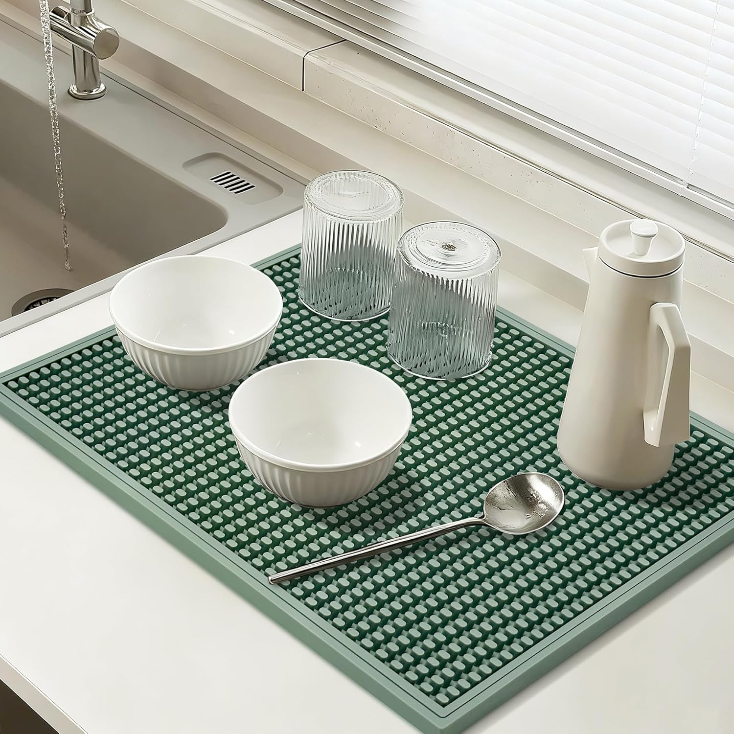Dish Drying mat - 18" x 12" Green Silicone Drying mat, Kitchen Counter Dish Drying mats,Rubber Dish Drying mat, Applies to bar mat、Coffee mat