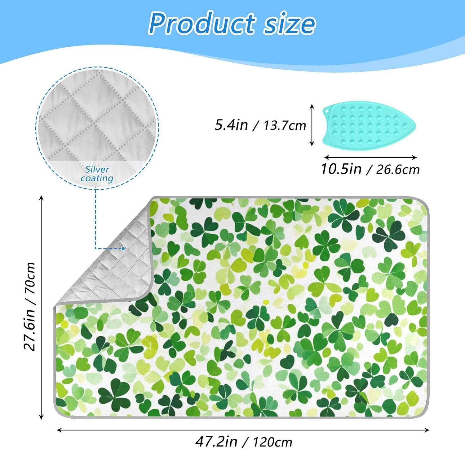 Bright Green Clover St. Patrick Ironing Mat for Table top Portable Ironing Pad Blanket for Washer Dryer Countertop Travel