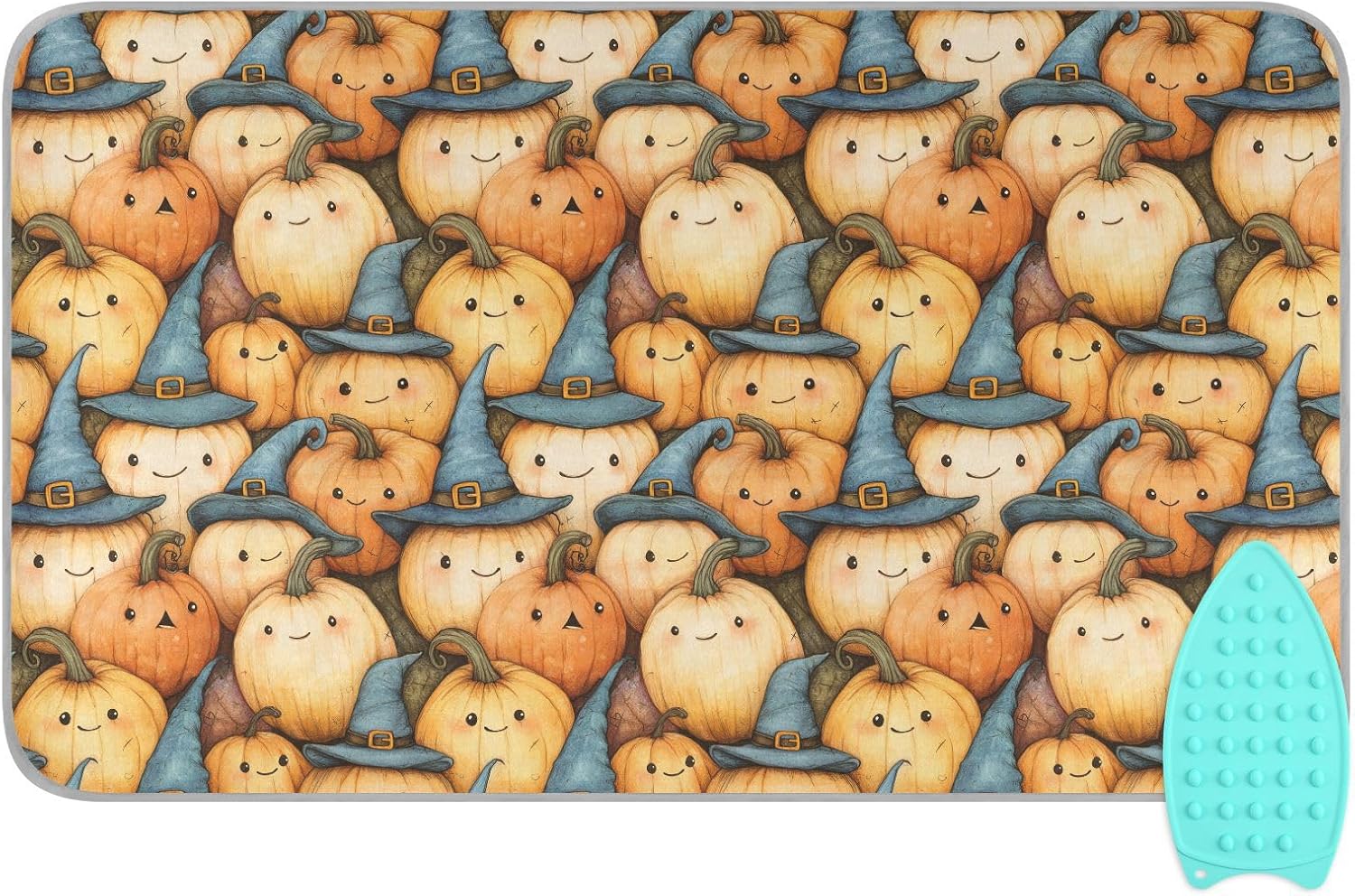 Cute Pumpkin Halloween Ironing Mat for Table top Portable Ironing Pad Blanket for Washer Dryer Countertop Travel