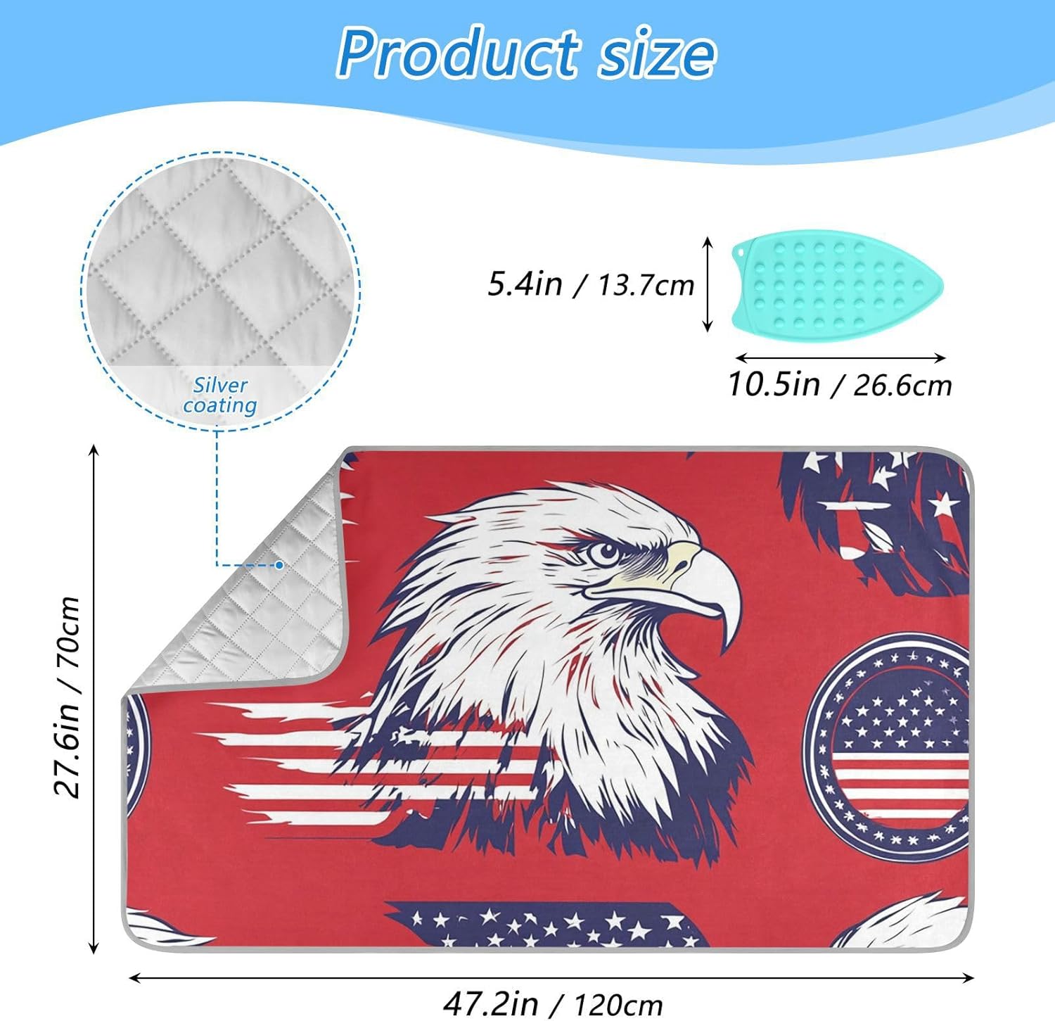 American Flag Bald Eagle Red Ironing Mat for Table top Portable Ironing Pad Blanket for Washer Dryer Countertop Travel