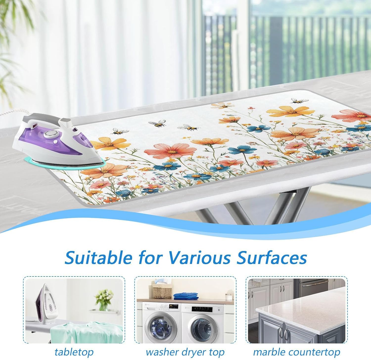 - Widely Used: This ironing mat for table top can not only be used as an ironing pad, but also as a heat-resistant cover pad on washing machines, dryers, or any other countertops, ensuring that the surface is free from dust, scratches, and other minor surface damage, very suitable for home and travel use