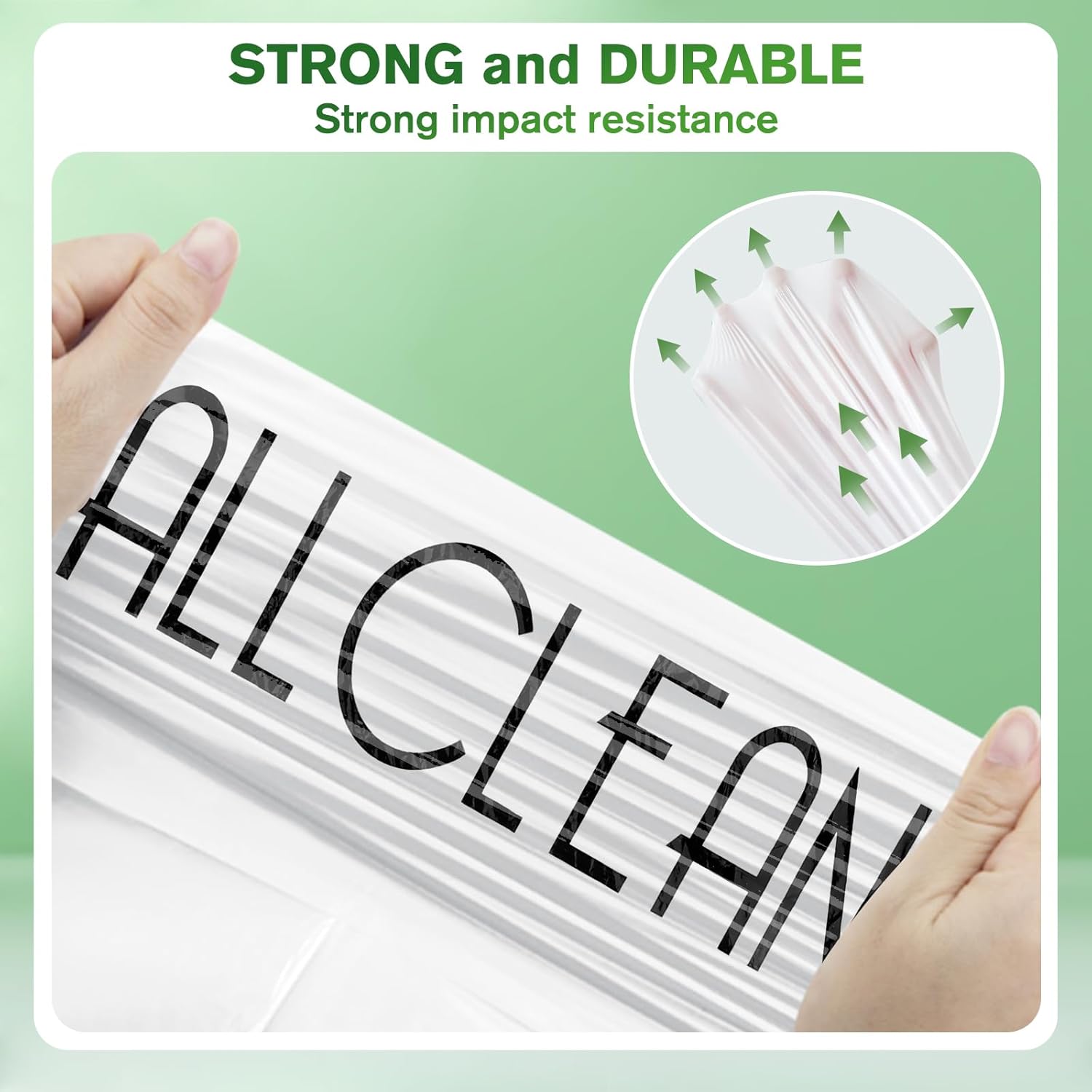 - Drawstring Small Trash Bags Strong Drawstring & No Tearing Design: Our small trash bags 4 gallons, white trash bag with black drawstring closure for easy tying and carrying. We have thickened and widen the drawstring part, it is enough to lift the weight of a larger capacity than the garbage bag itself. The durable drawstring ensures that the bag stays in place. The bags in each roll of garbage bags are independent, so there is no need to tear them, and there will be no waste of trash bags.