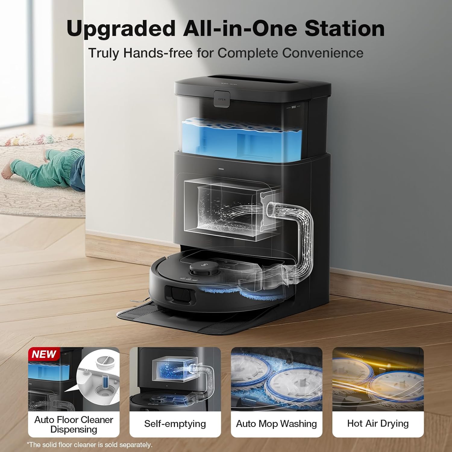- Unbeatable 10,000Pa Suction Power - Powered by advanced motor and airflow technology, DEEBOT N30 OMNI boasts a powerful 10,000Pa suction that deep-cleans surfaces, effortlessly removing dirt