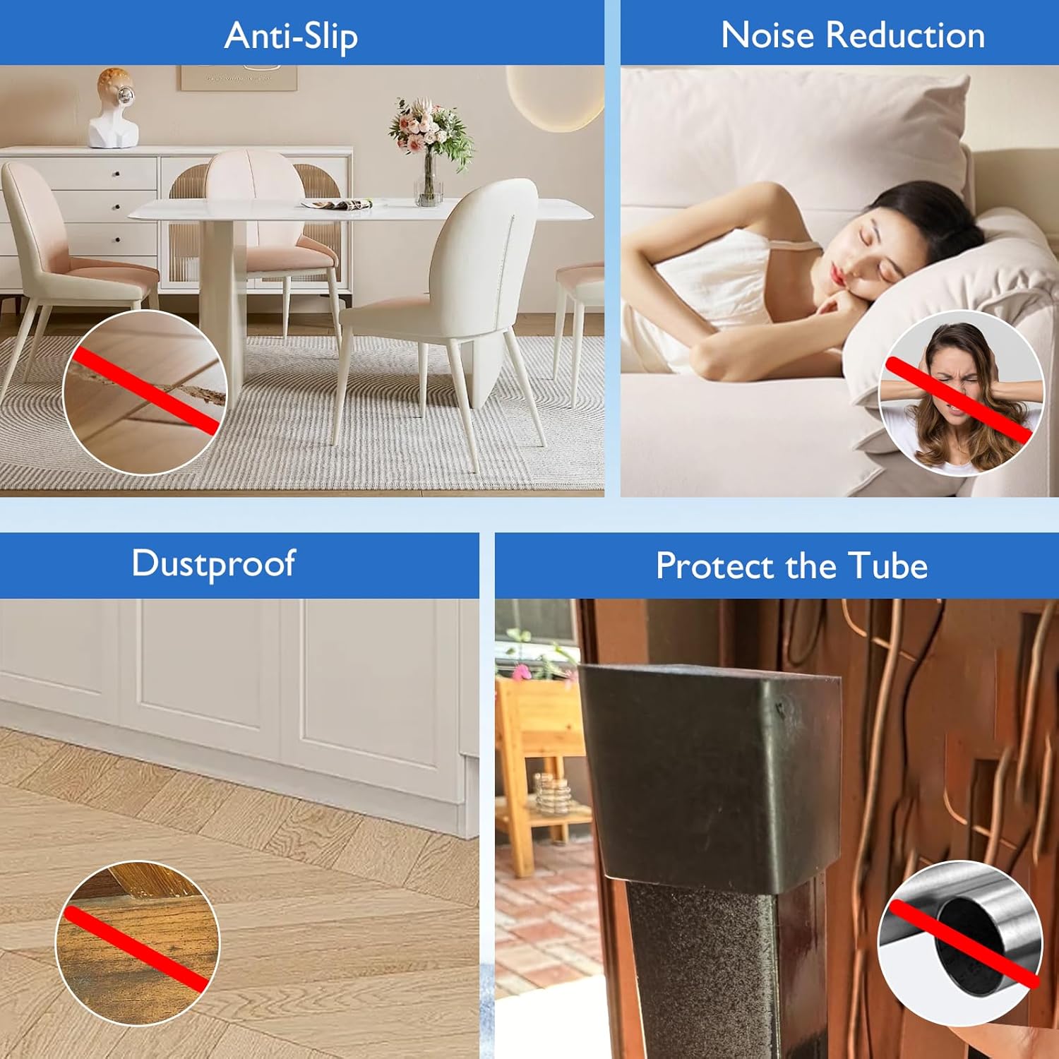 - Wide Applications: Suitable for various size furniture feet, our chair feet caps can be used on kitchen chairs, tables, dining room chairs, sofas, couches, bar stools, beds, dressers, patio chairs, metal bistro chairs, desk chairs, any rectangular opening; They provide a neat and safe finish to tube ends