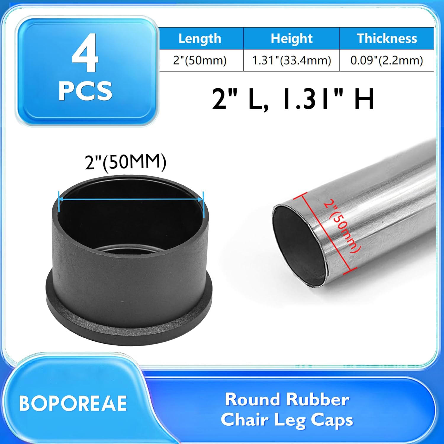 - Dimension and Quantity: 4 black round chair leg floor protectors, suitable for 2" OD round chair legs; We offer different size options,including 1"- 3" round chair feet, allowing you to find the perfect fit for your specific needs (Please confirm that you are measuring the outside, not the hole)