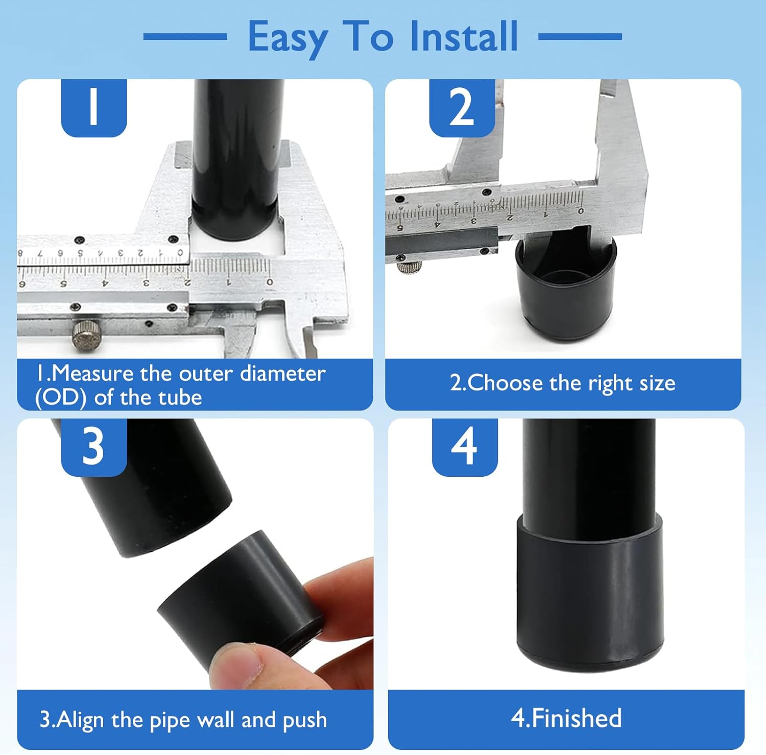 - Easy Installation: The installation of our stool leg floor protectors are easy and push the chair leg feet on; The high elasticity of furniture leg protectors make them easy to put on chair legs; Anti-slip design of chair protector holds the leg firmly and tighter(If the leg caps are hard to fit it, please soaking for a few seconds in warm water to soften them for snugly fit)