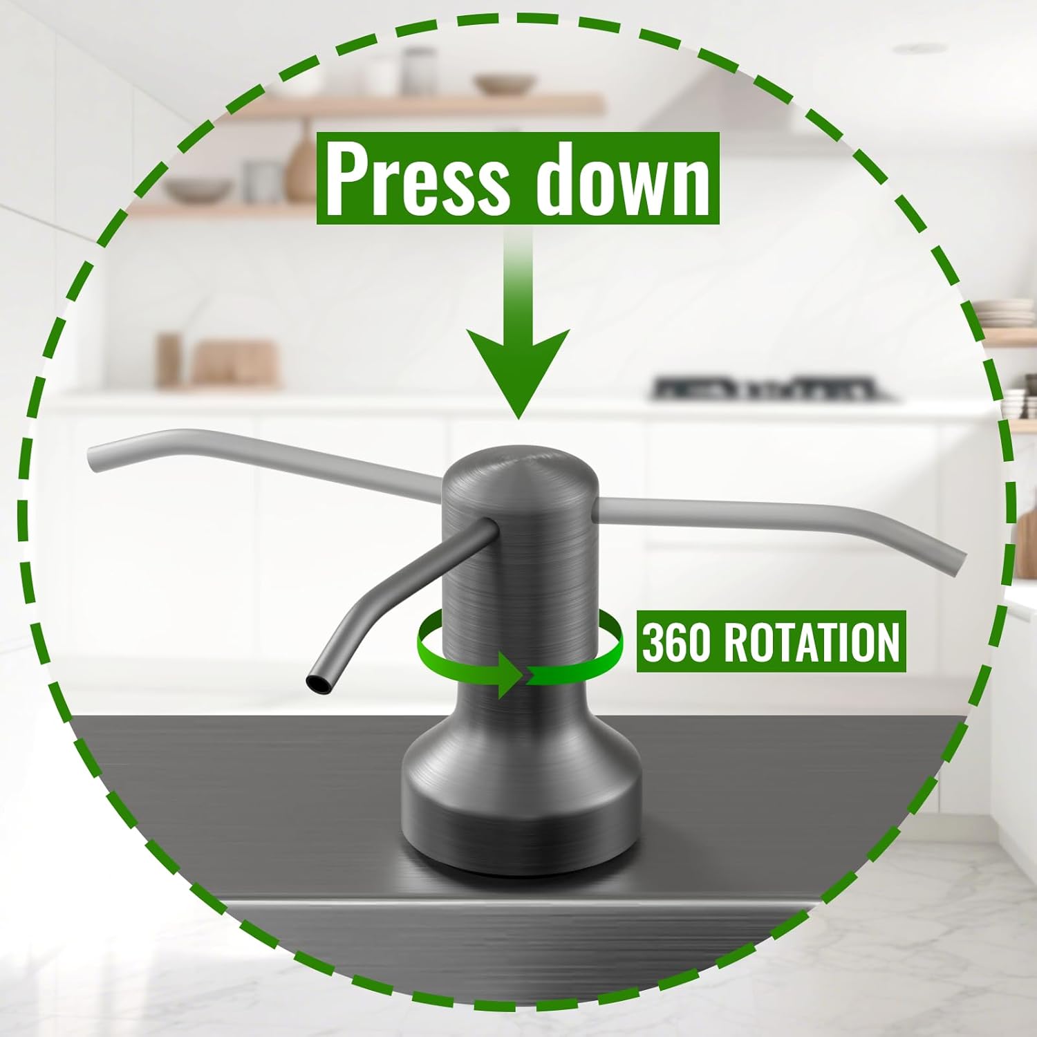 - Premium Material:This sink soap dispenser for kitchen sink is made of durable 304 stainless steel and PE plastic. This soap dispenser pump head possesses long-lasting performance and can survive over 50,000 press tests. Not only waterproof, and is perfect for damp environments.