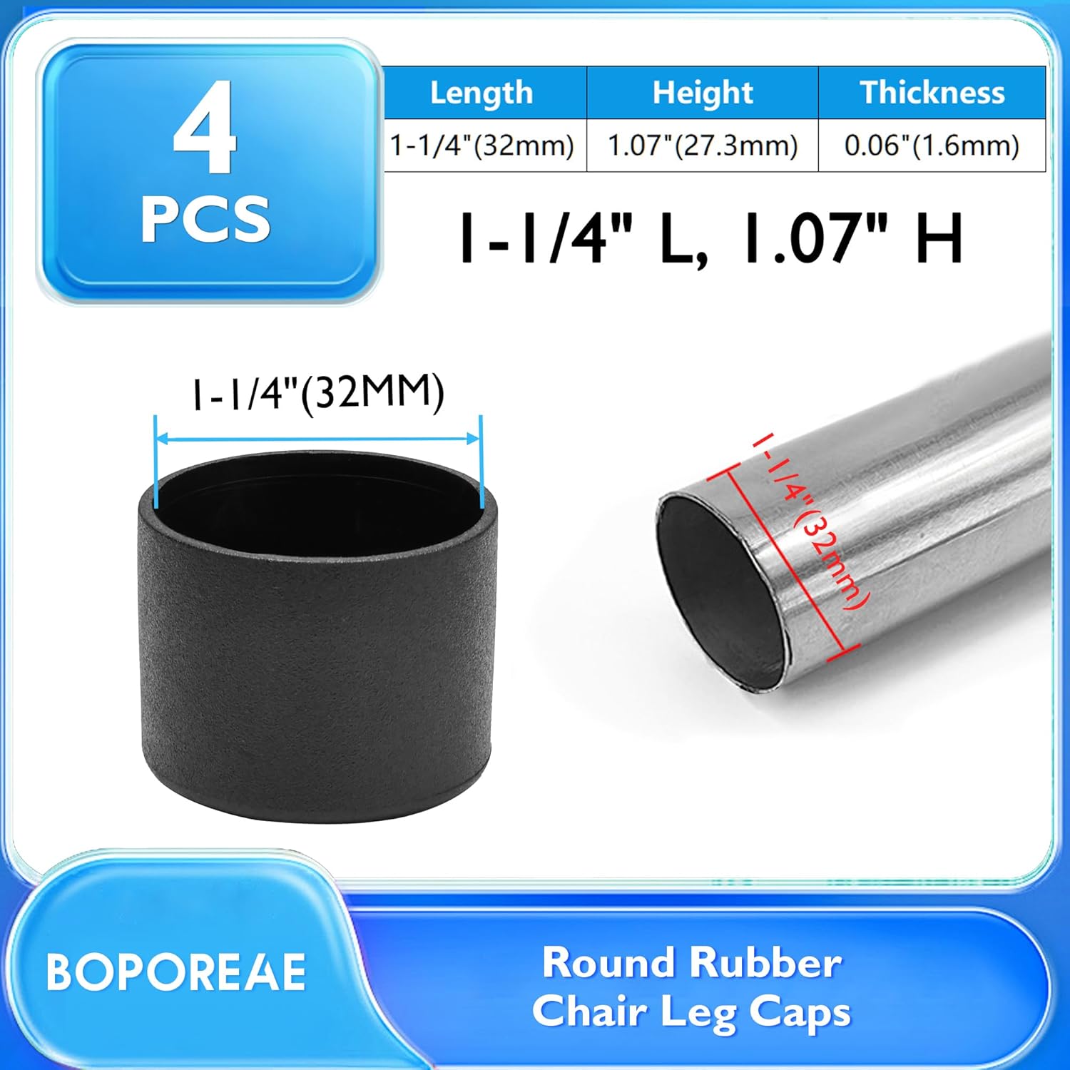 - Dimension and Quantity: 4 black round chair leg floor protectors, suitable for 1.25"(32 mm) OD round chair legs; We offer different size options,including 1"- 3" round chair feet, allowing you to find the perfect fit for your specific needs (Please confirm that you are measuring the outside, not the hole)