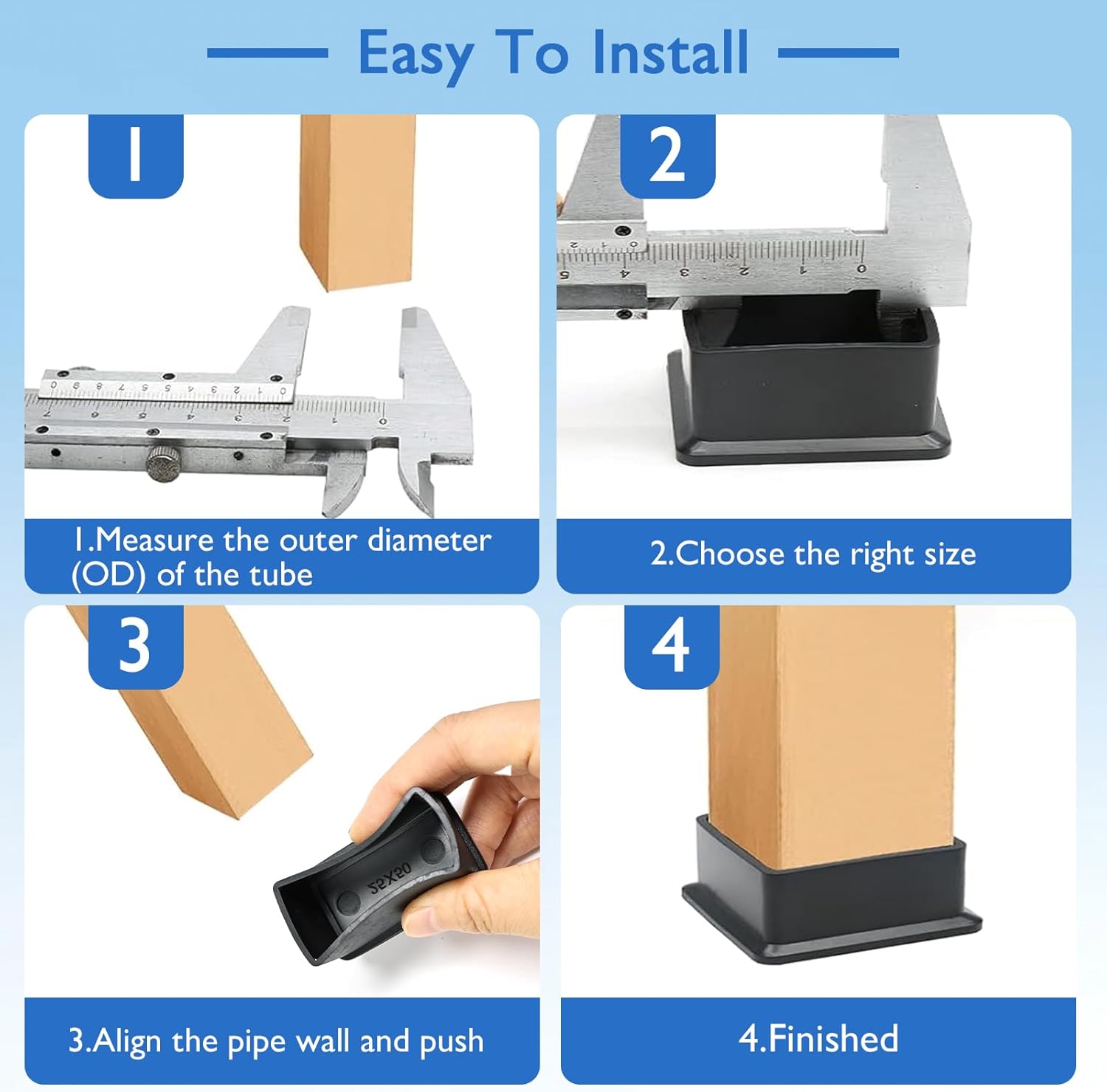- Wide Applications: Suitable for various size furniture feet, our chair feet caps can be used on kitchen chairs, tables, dining room chairs, sofas, couches, bar stools, beds, dressers, patio chairs, metal bistro chairs, desk chairs, any rectangular opening; They provide a neat and safe finish to tube ends