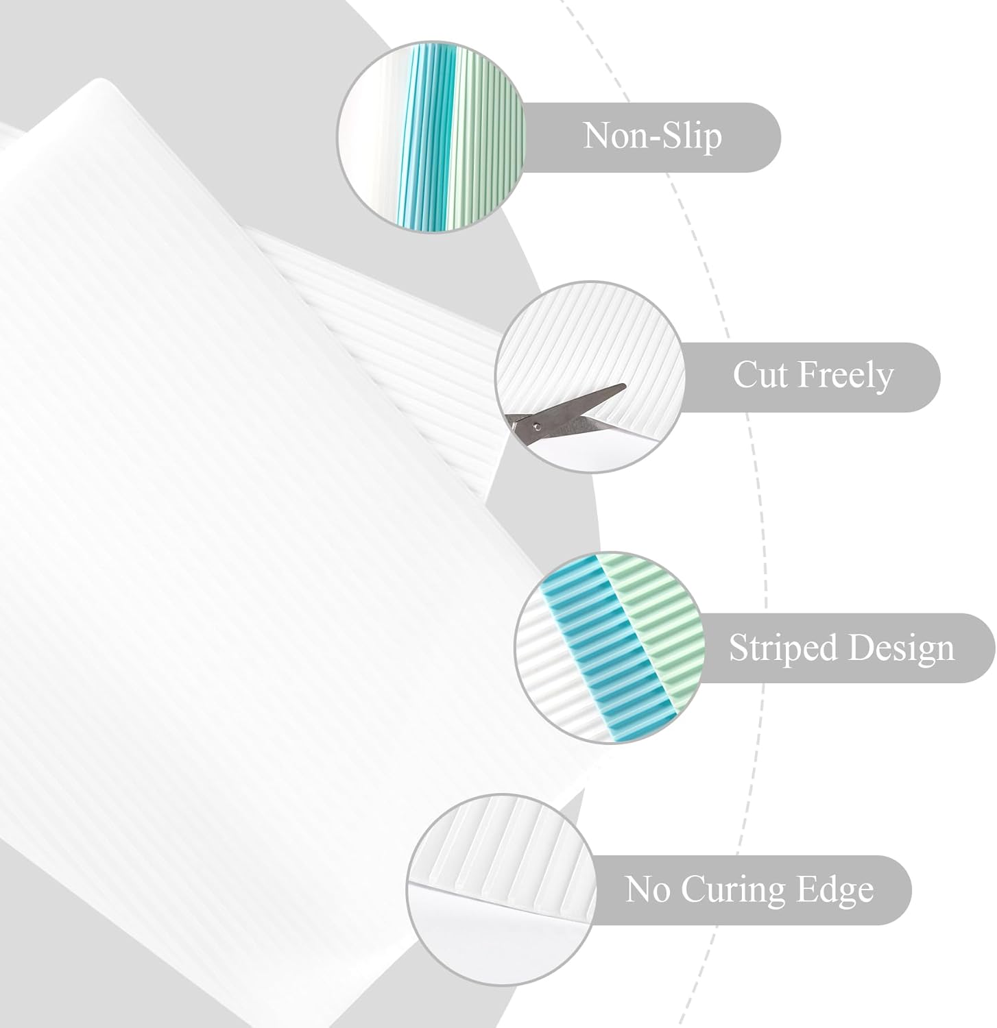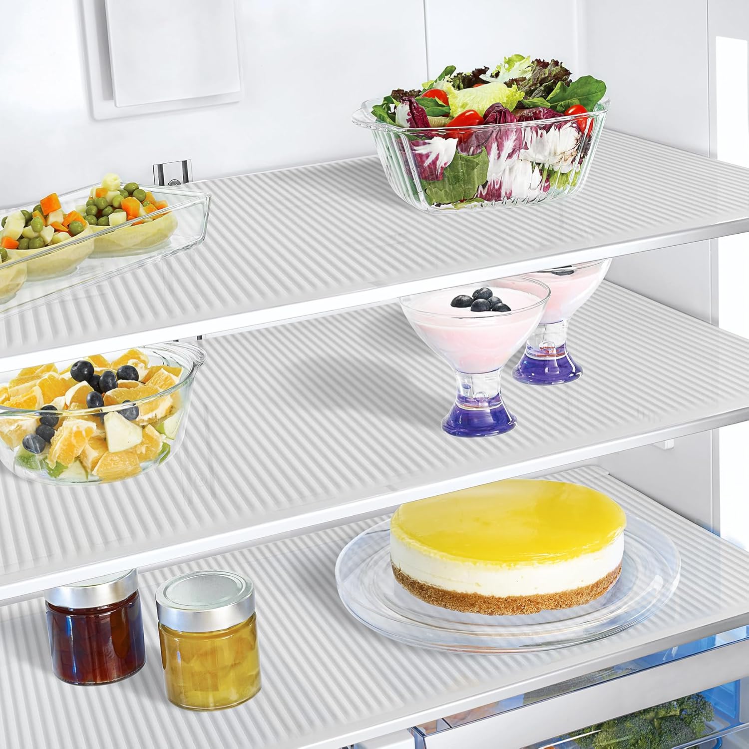 - 【DIY size and cuttable】: The refrigerator shelf liners for glass shelves is suitable for standard fridge, but the mat can be cut into the right size and shape with scissors as needed. To fit anywhere in your home, such as shelves, drawers, cabinets, placemats, food storage boxes, etc.