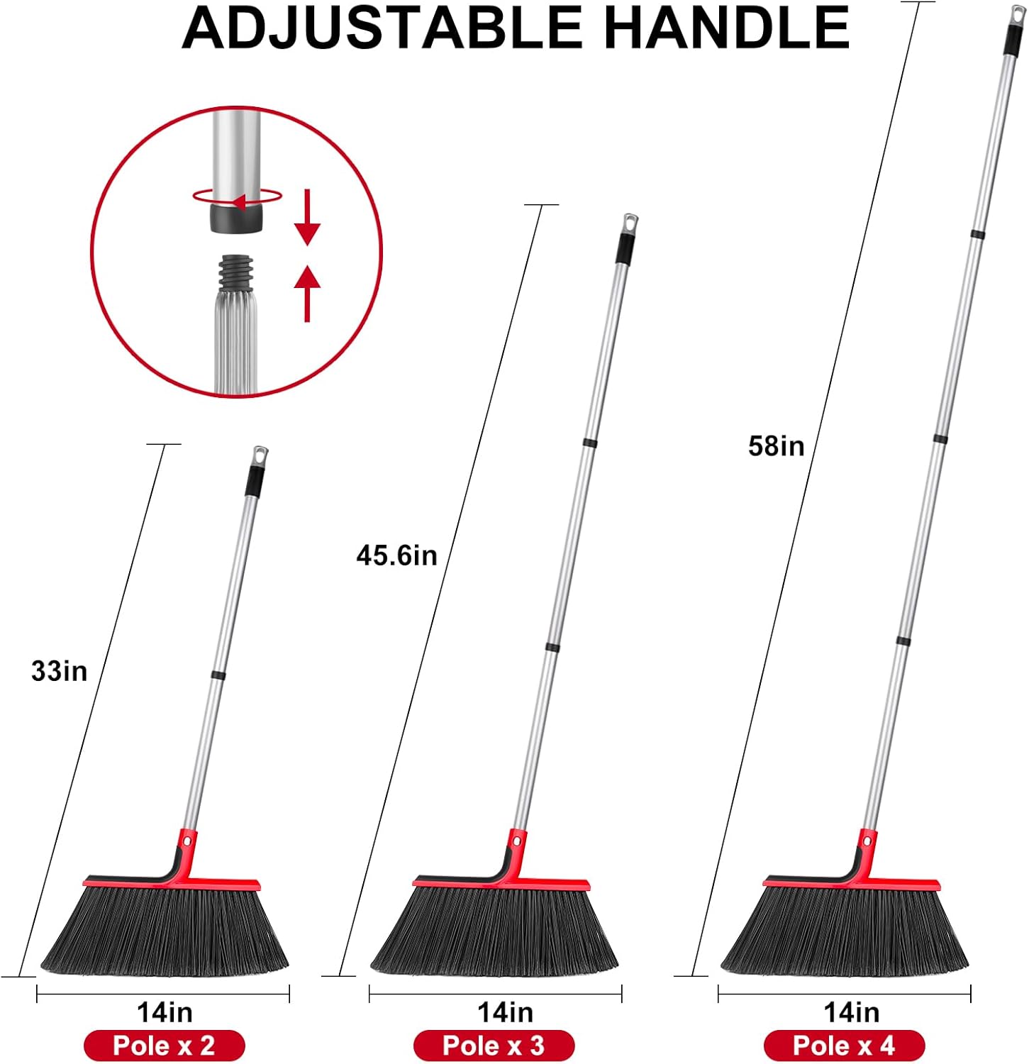 - ⭐【14″ Wide Broom Head with 58″ Adjustable Handle】14-inch wide broom head with a full-size 58-inch handle for indoor & outdoor sweeping. Adjustable height ensures a comfortable fit for users of all heights.